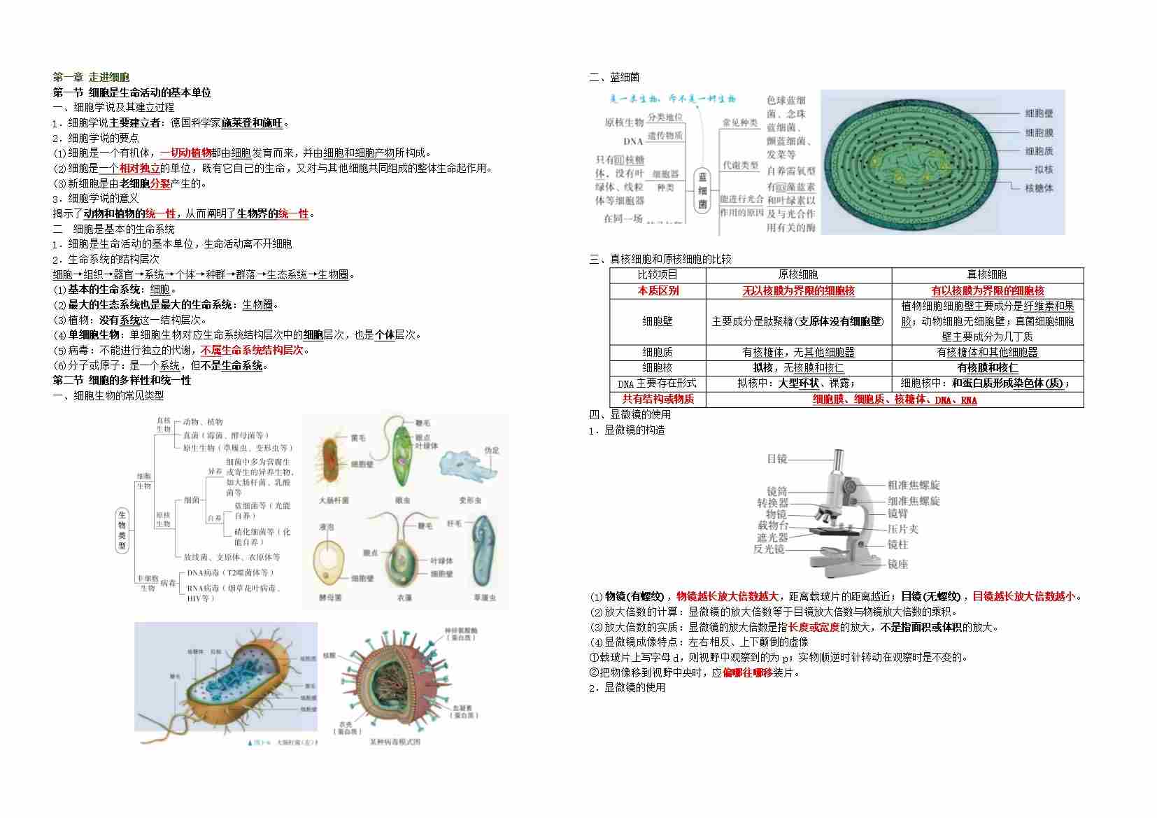 第1章 走近细胞(单元测试·基础卷)(教师版)