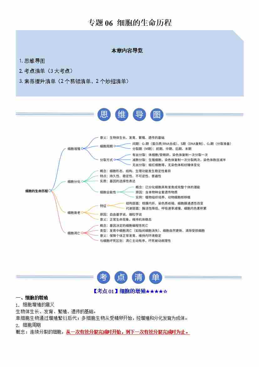 (知识清单)专题06 细胞的生命历程(期末知识清单)