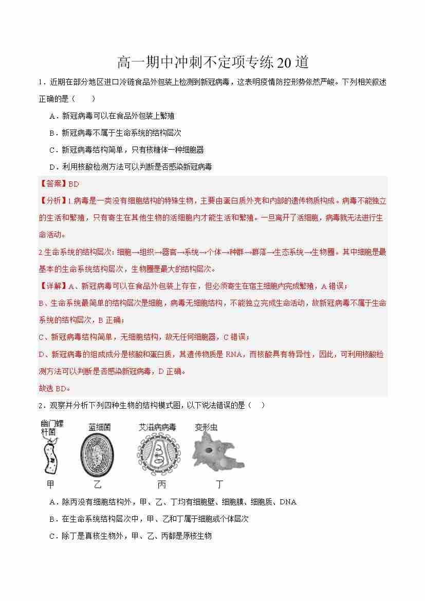 期中冲刺(不定项专练20道)(学生版)