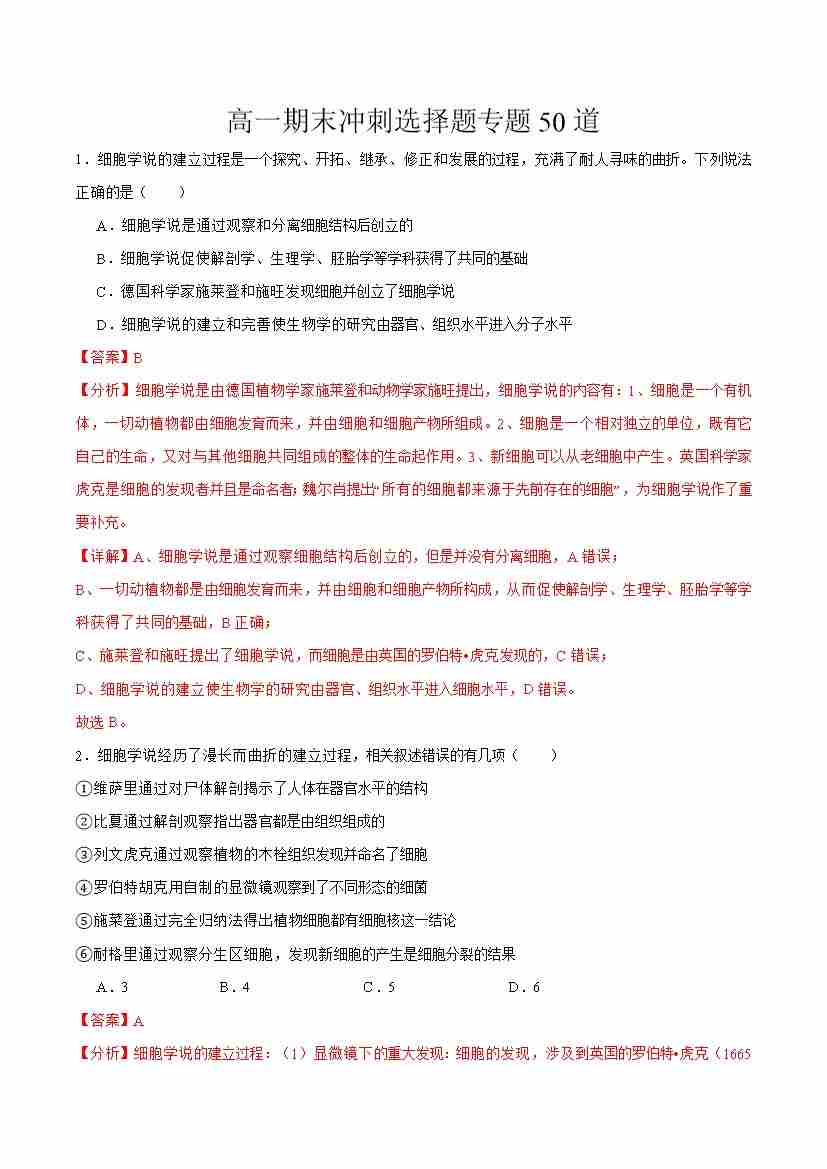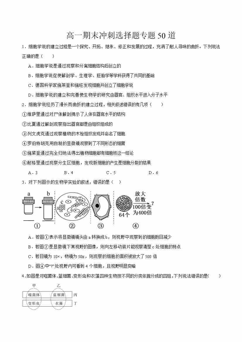 期末冲刺(选择题专练50道)(教师版)