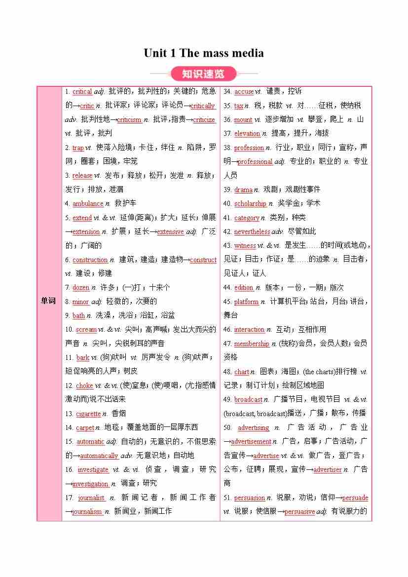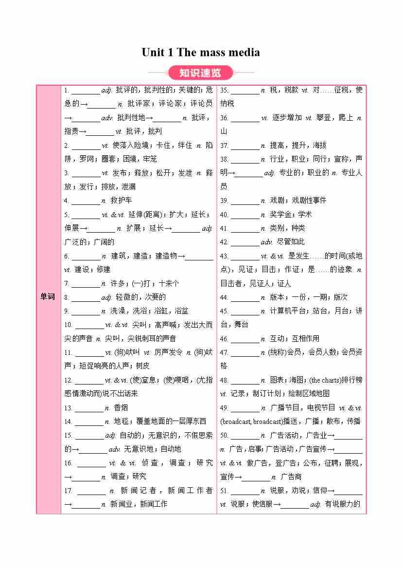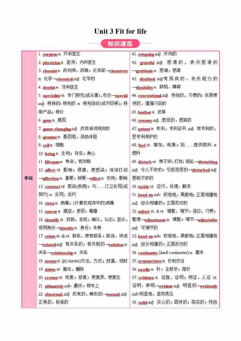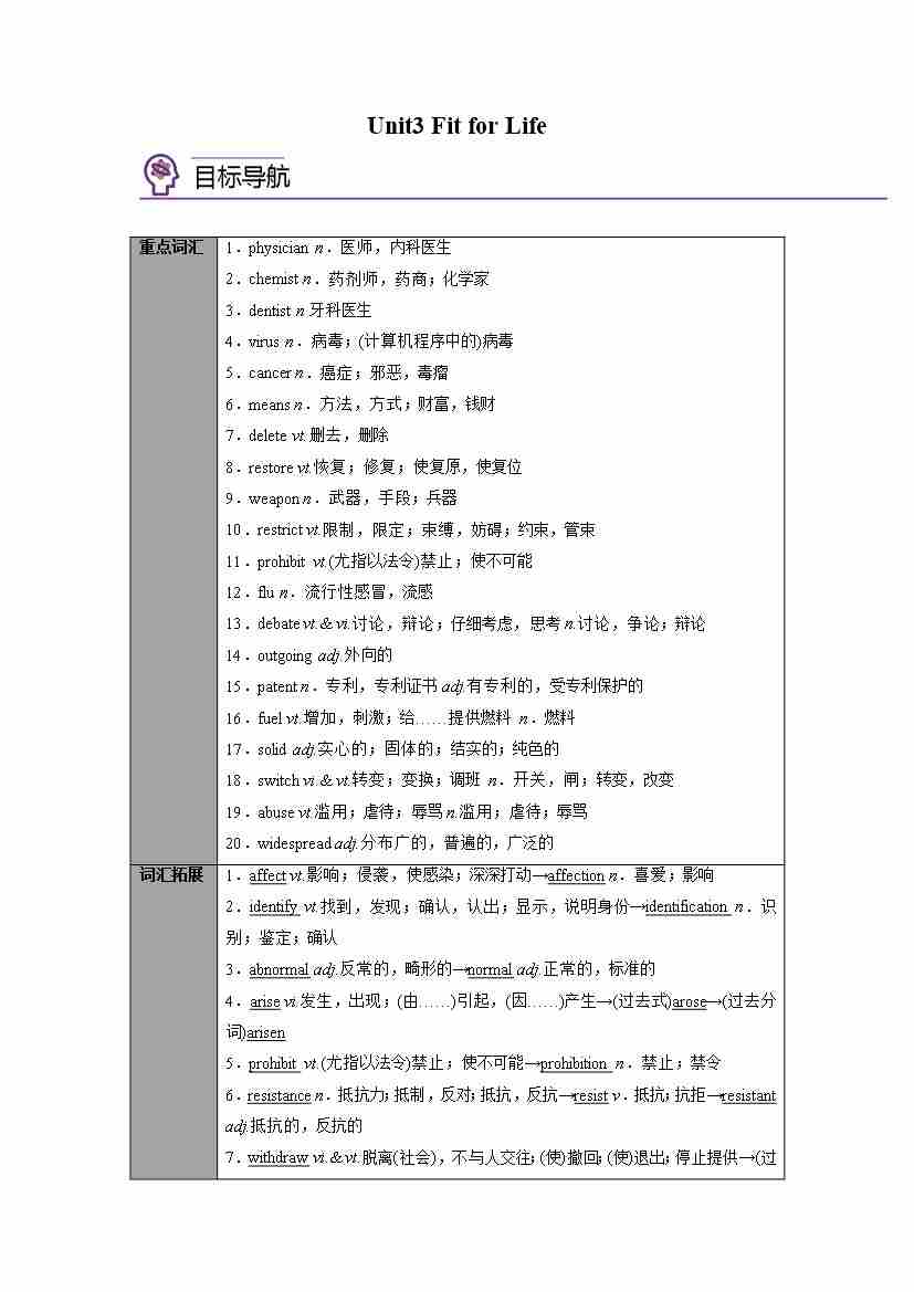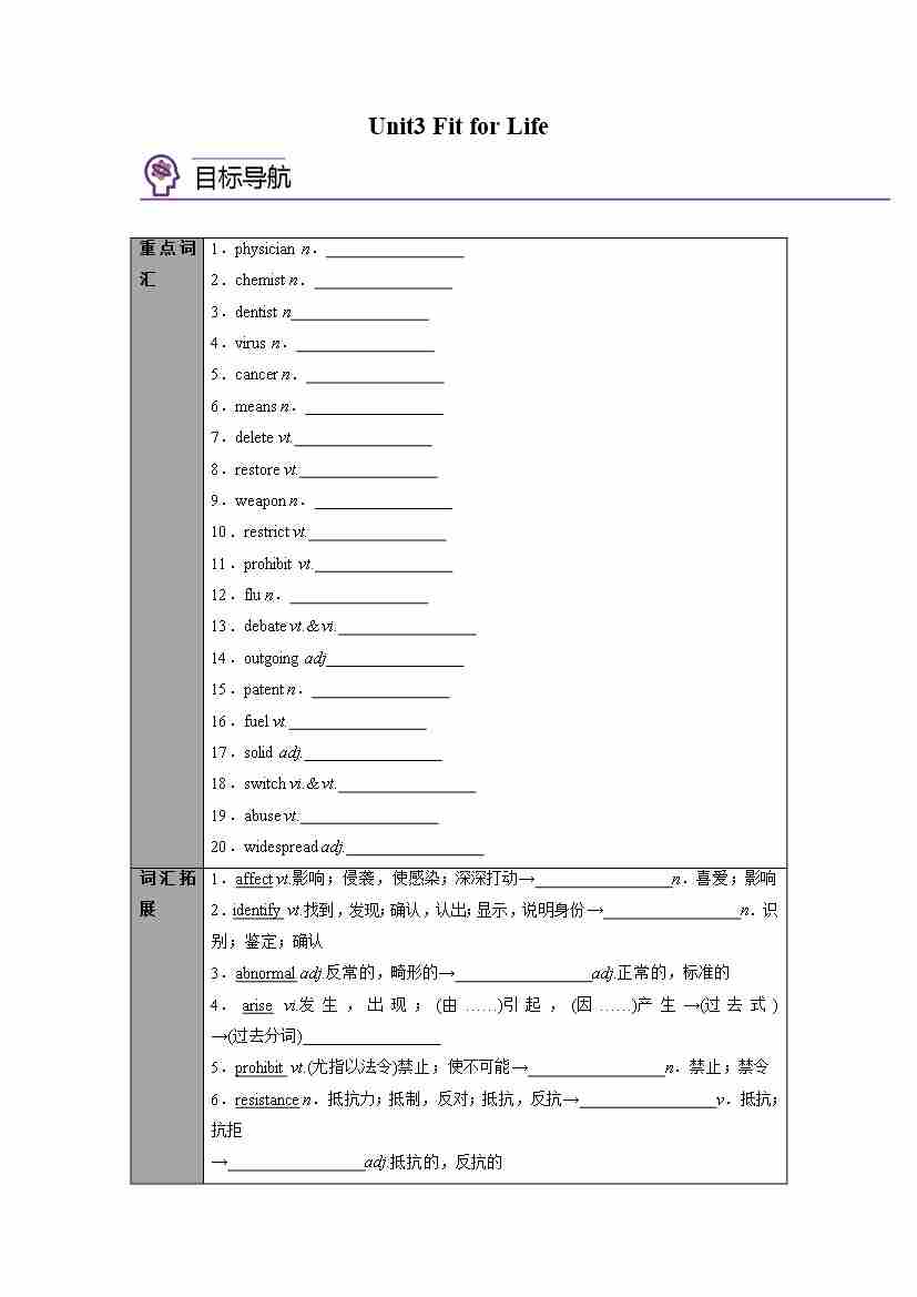 选择性必修第二册Unit3 Fit for Life(学生版)