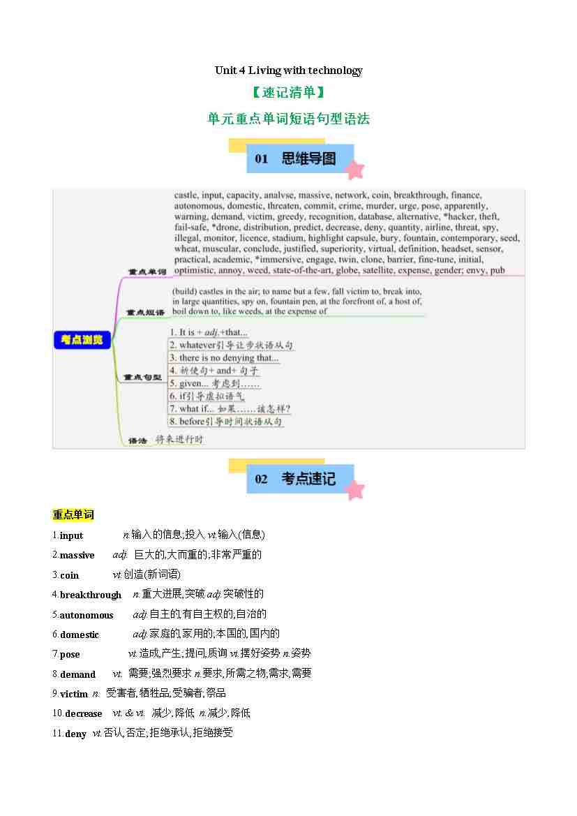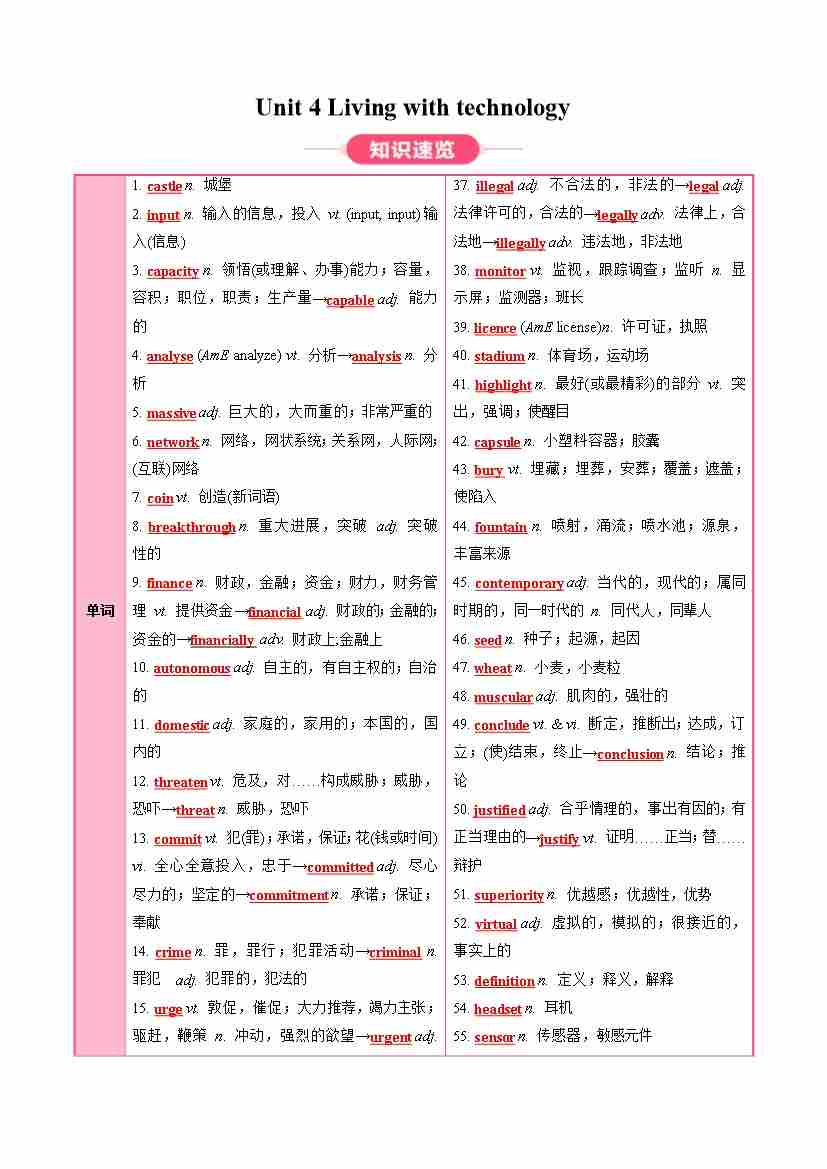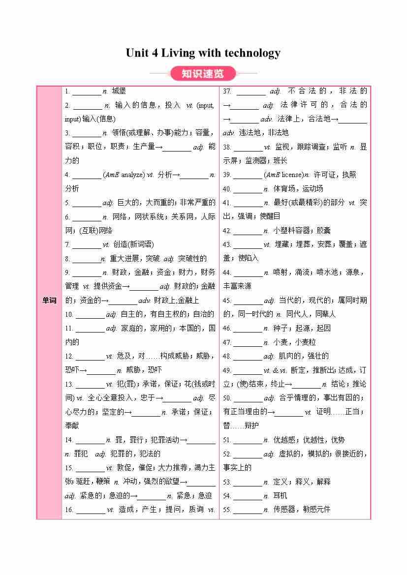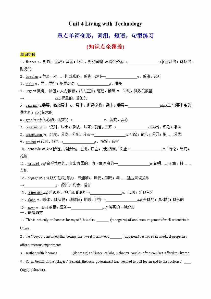 Unit 4 Living with Technology词性转换,核心单词,语法,短语,知识点复习题(学生版)