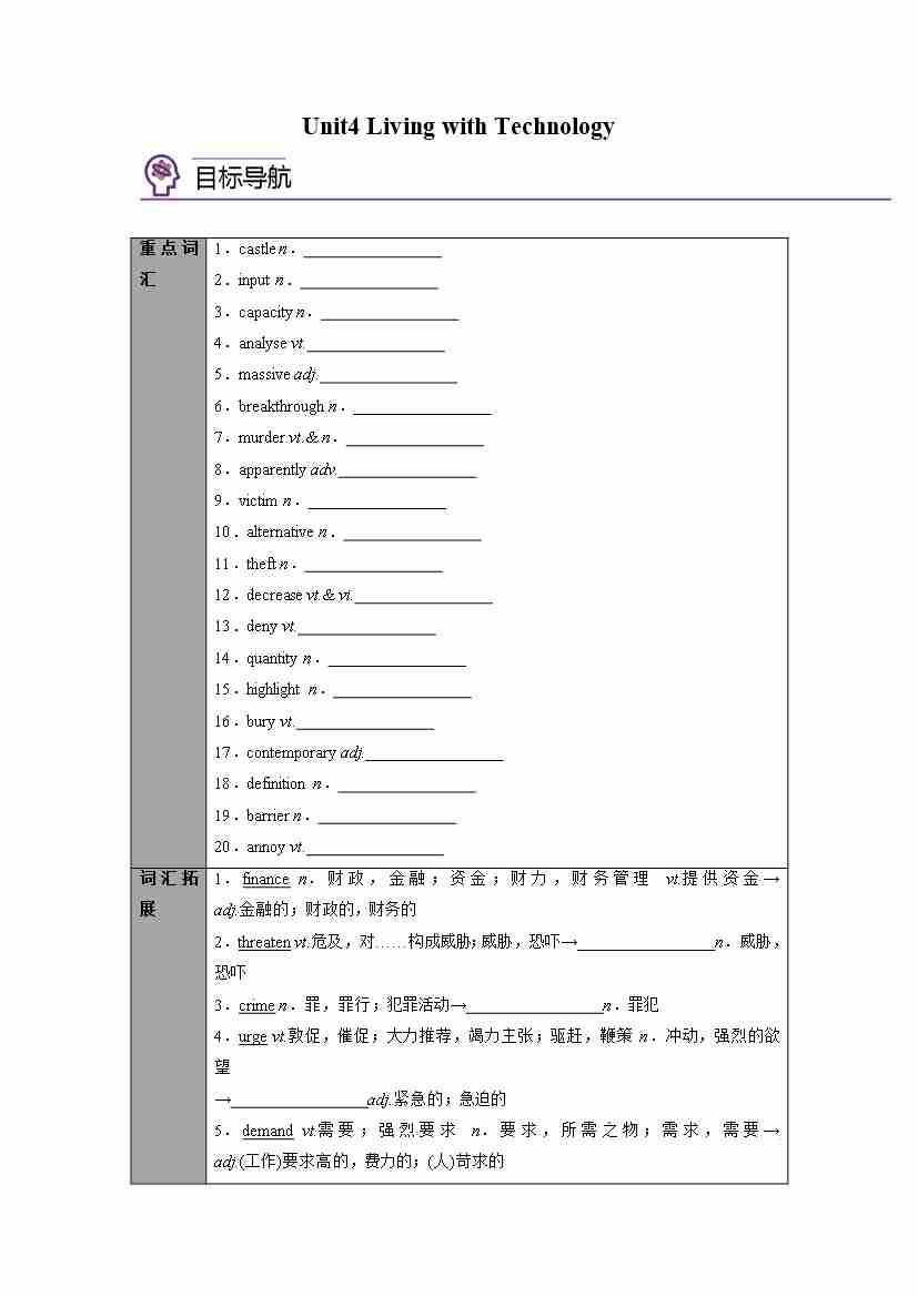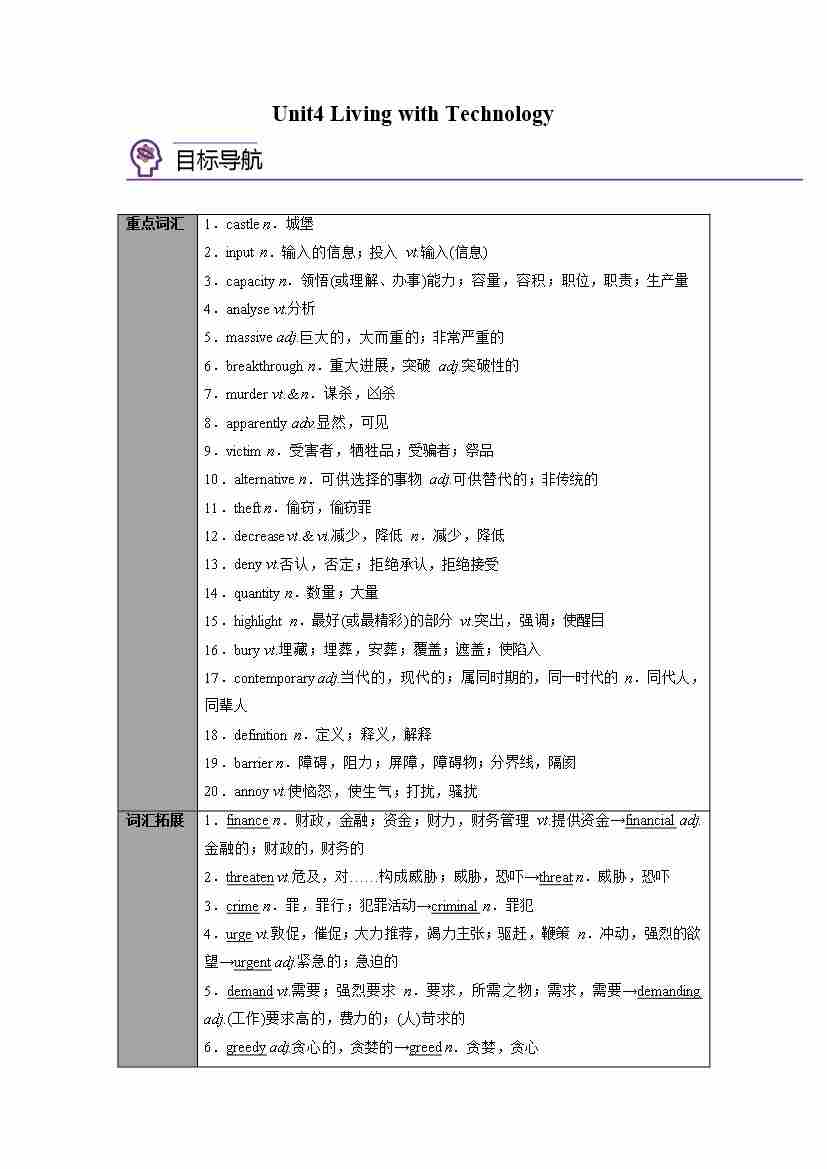 选择性必修第二册Unit4 Living with Technology(学生版)