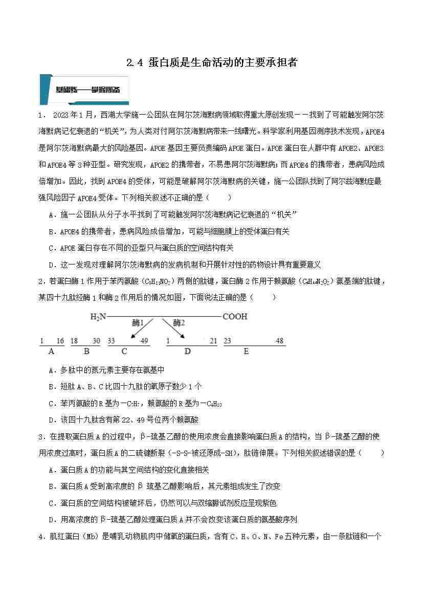 2.4 蛋白质是生命活动的主要承担者(原卷版)
