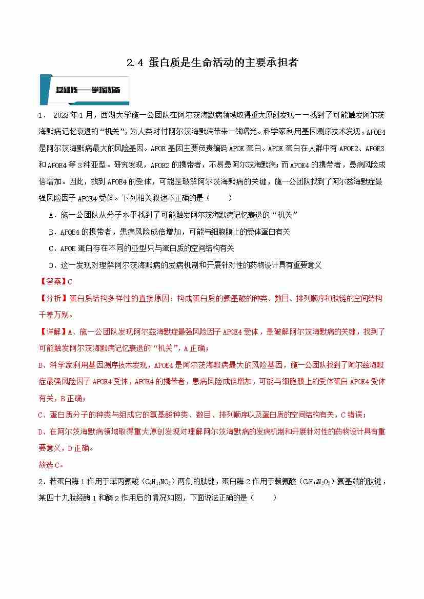 2.4 蛋白质是生命活动的主要承担者(解析版)