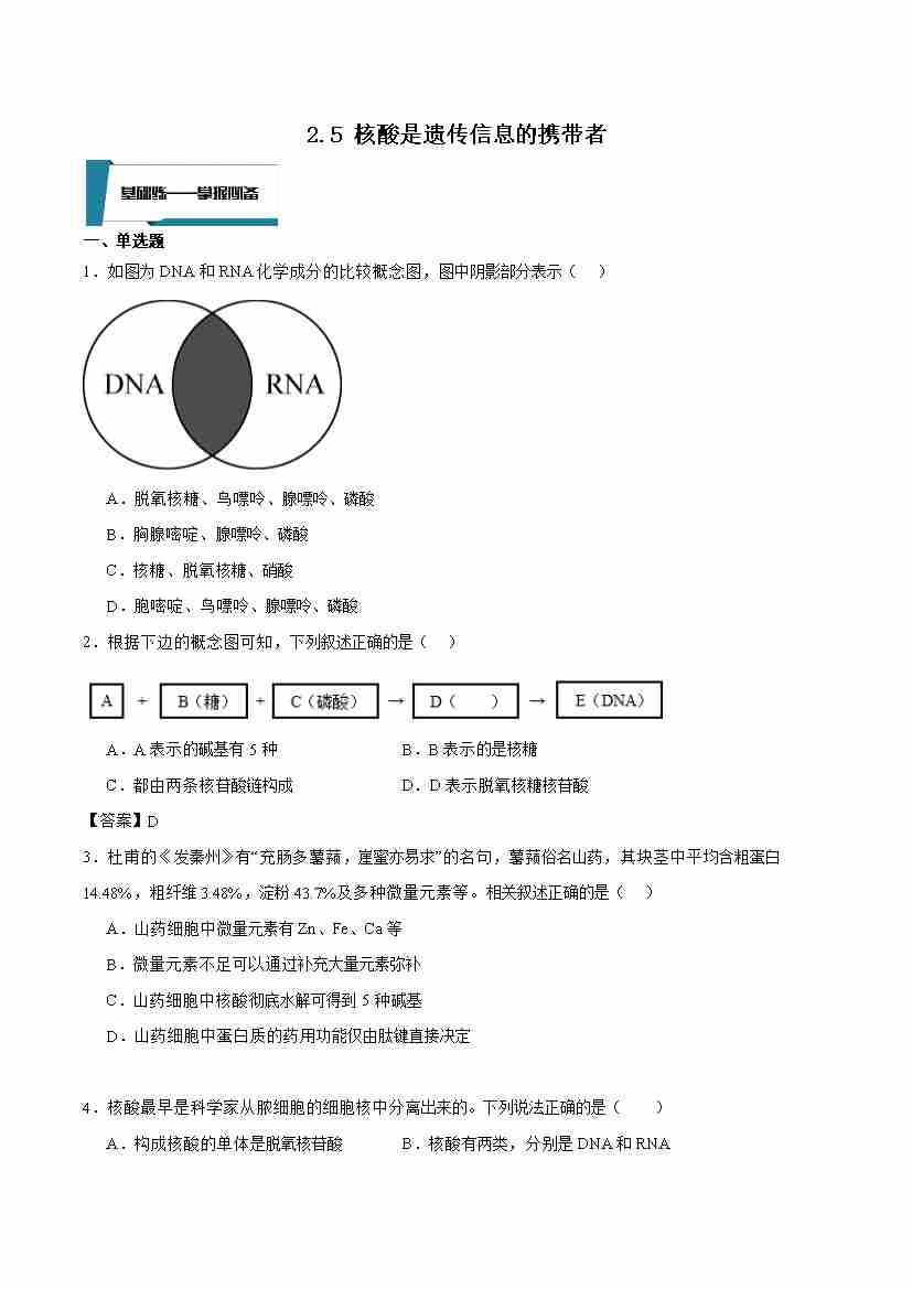 2.5 核酸是遗传信息的携带者(原卷版)