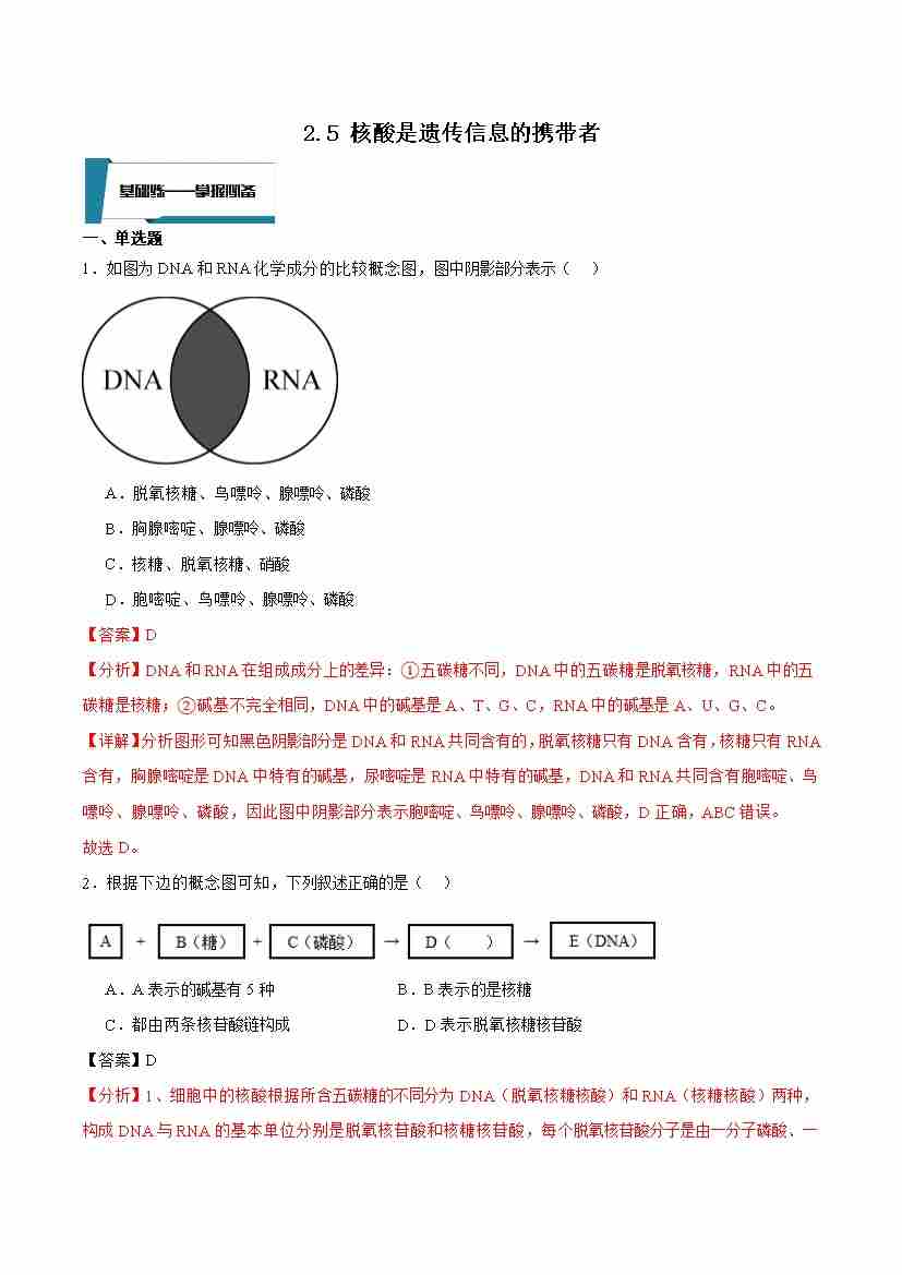 2.5 核酸是遗传信息的携带者(解析版)