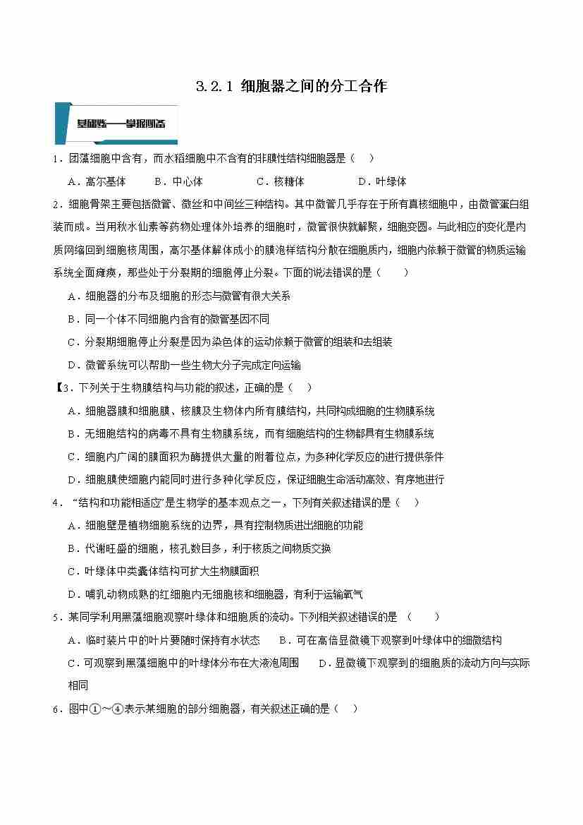 3.2.1 细胞器之间的分工合作(原卷版)