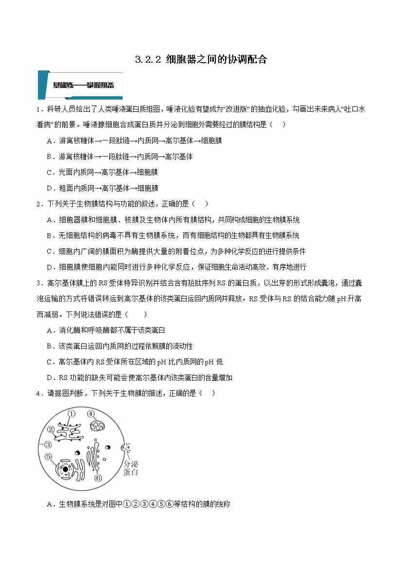 3.2.2 细胞器之间的协调配合(原卷版)