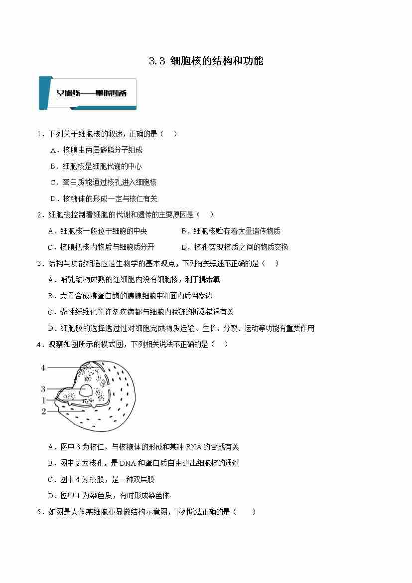 3.3 细胞核的结构和功能(原卷版)