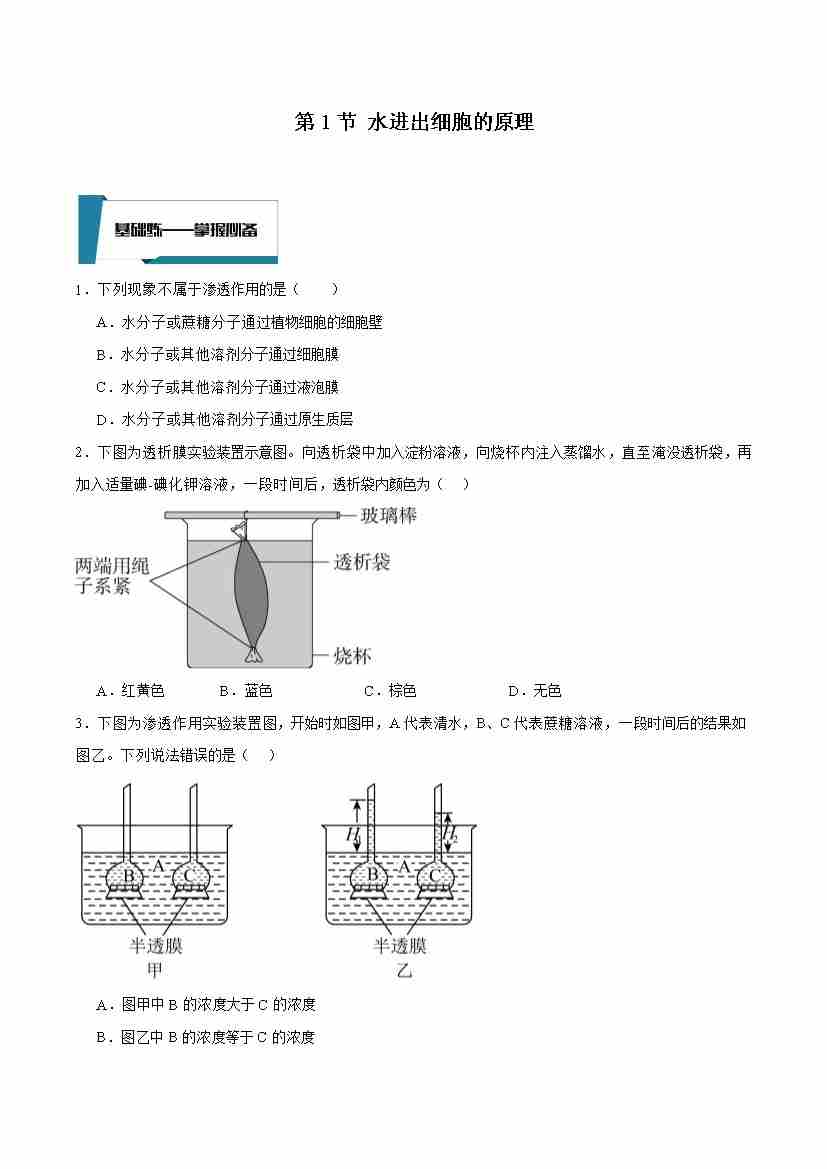4.1 水进出细胞的原理(原卷版)