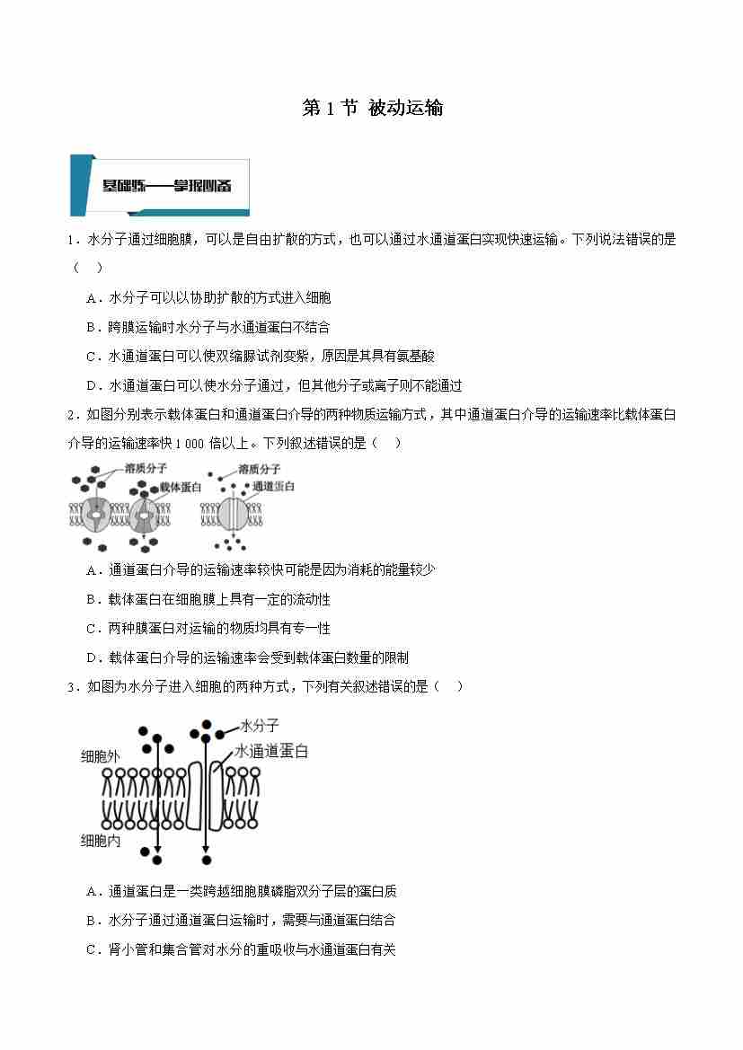 4.1 被动运输(第2课时)(原卷版)