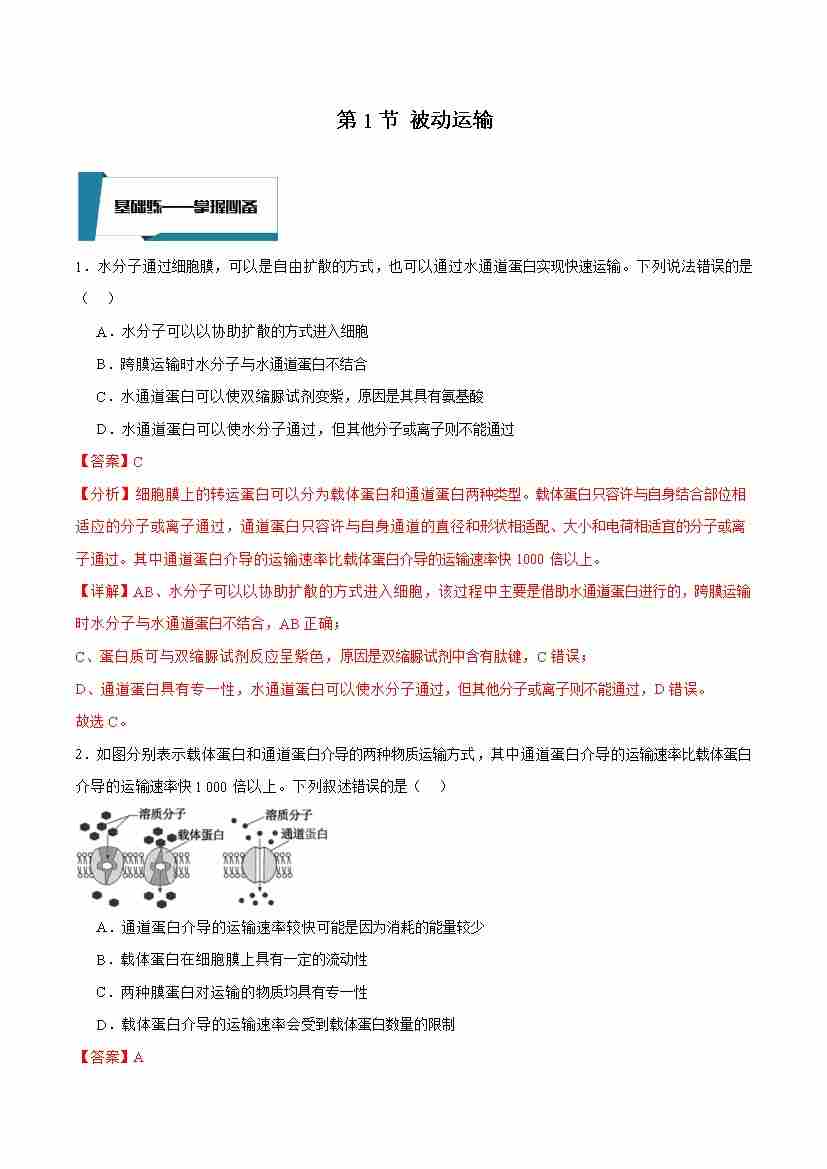 4.1 被动运输(第2课时)(解析版)