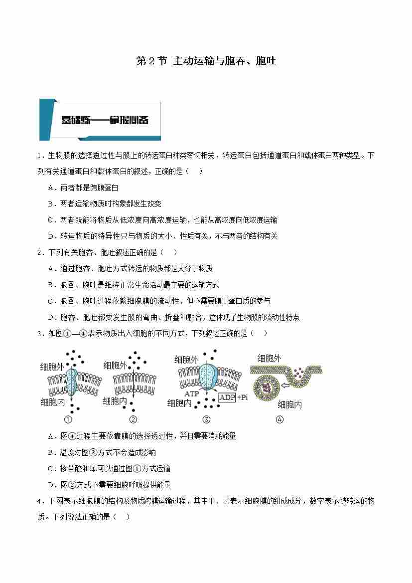 4.2 主动运输与胞吞、胞吐(原卷版)