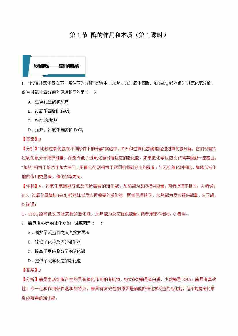 5.1.1 酶的作用和本质(解析版)