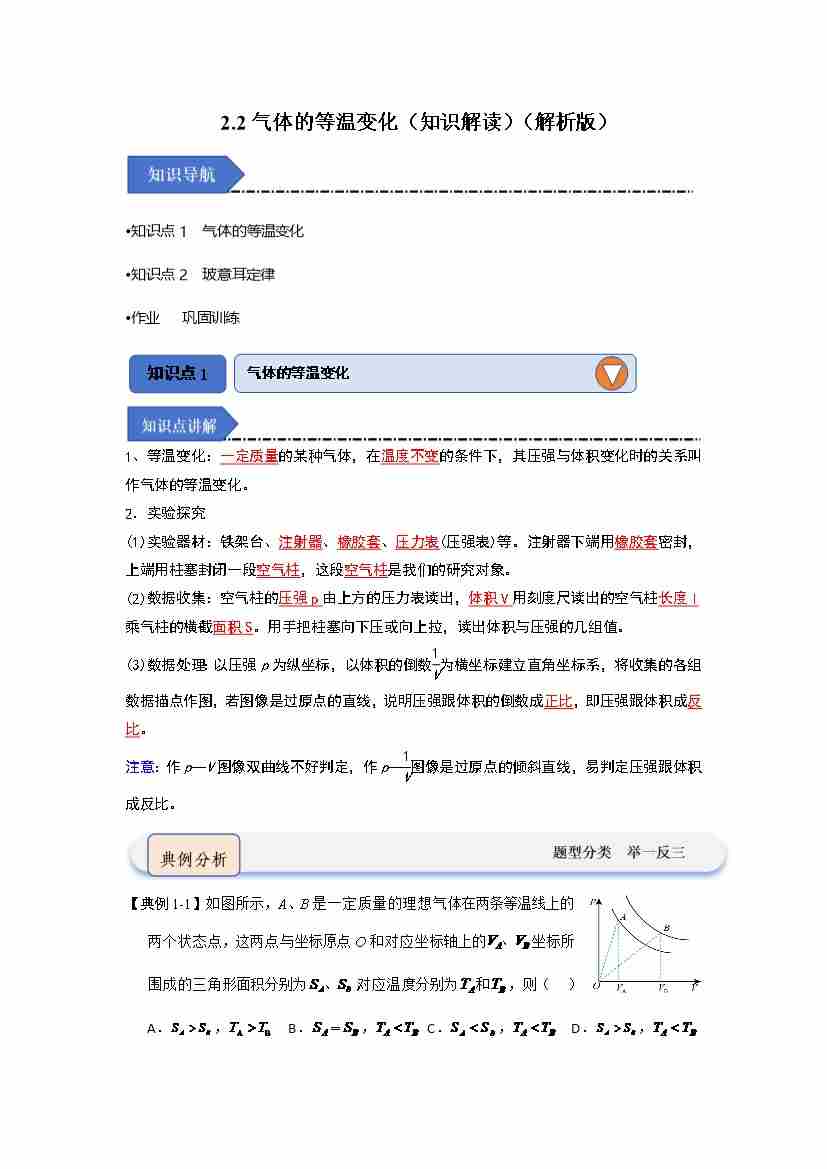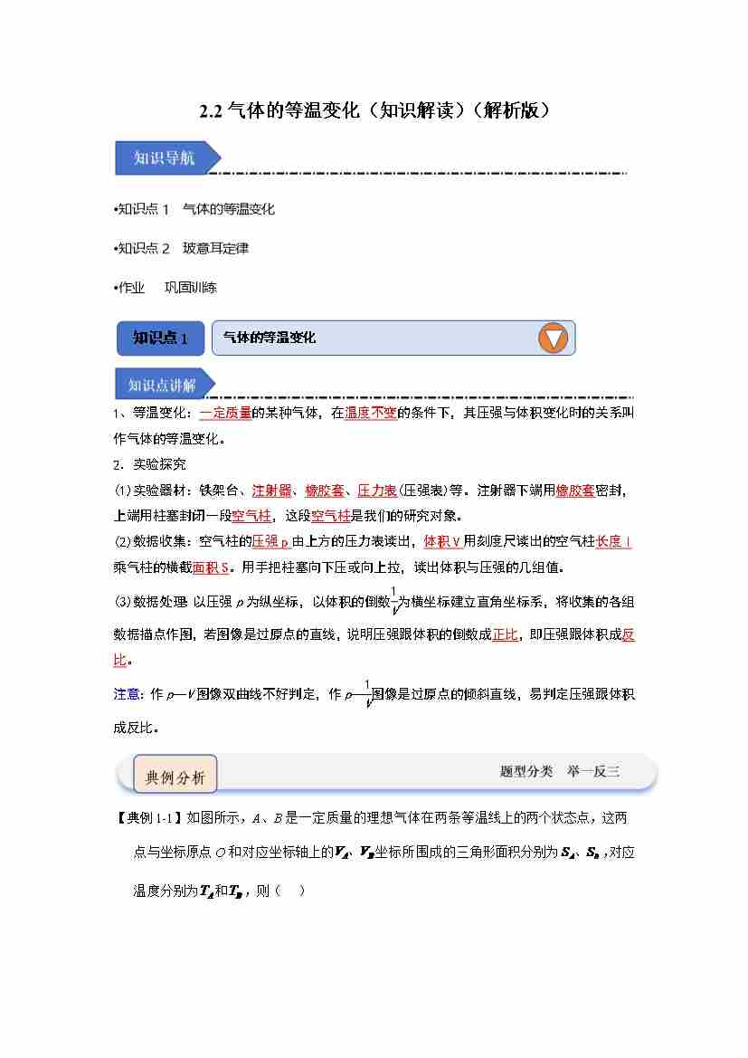 2.2气体的等温变化(知识解读)(教师版)