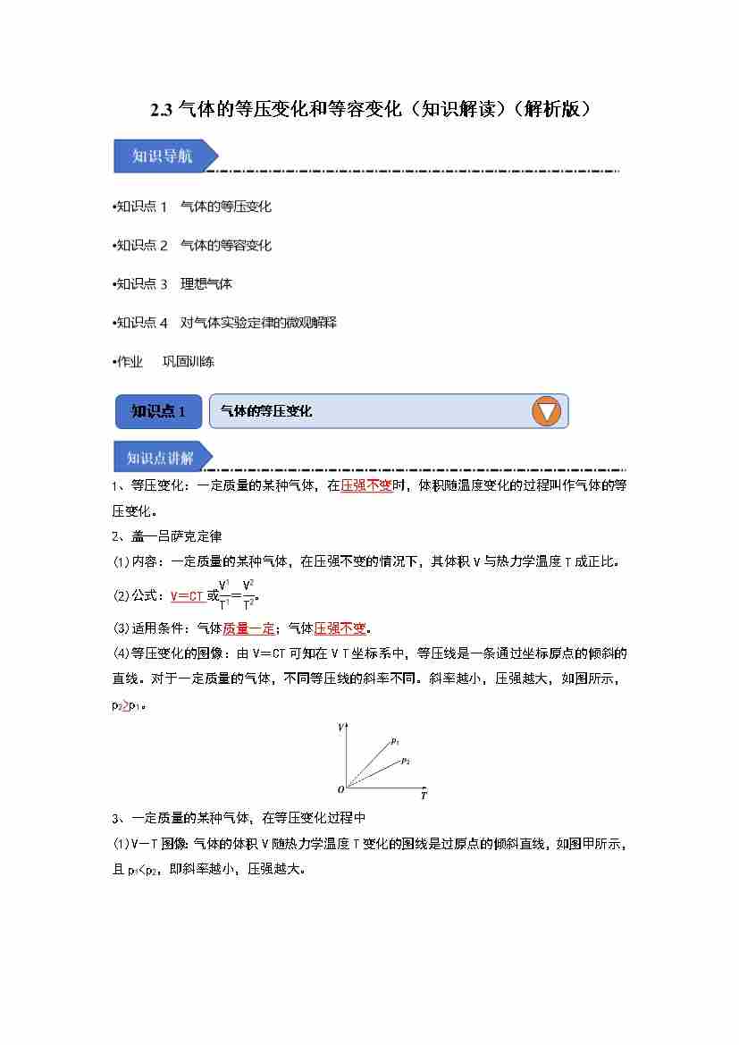 2.3气体的等压变化和等容变化(知识解读)(教师版)