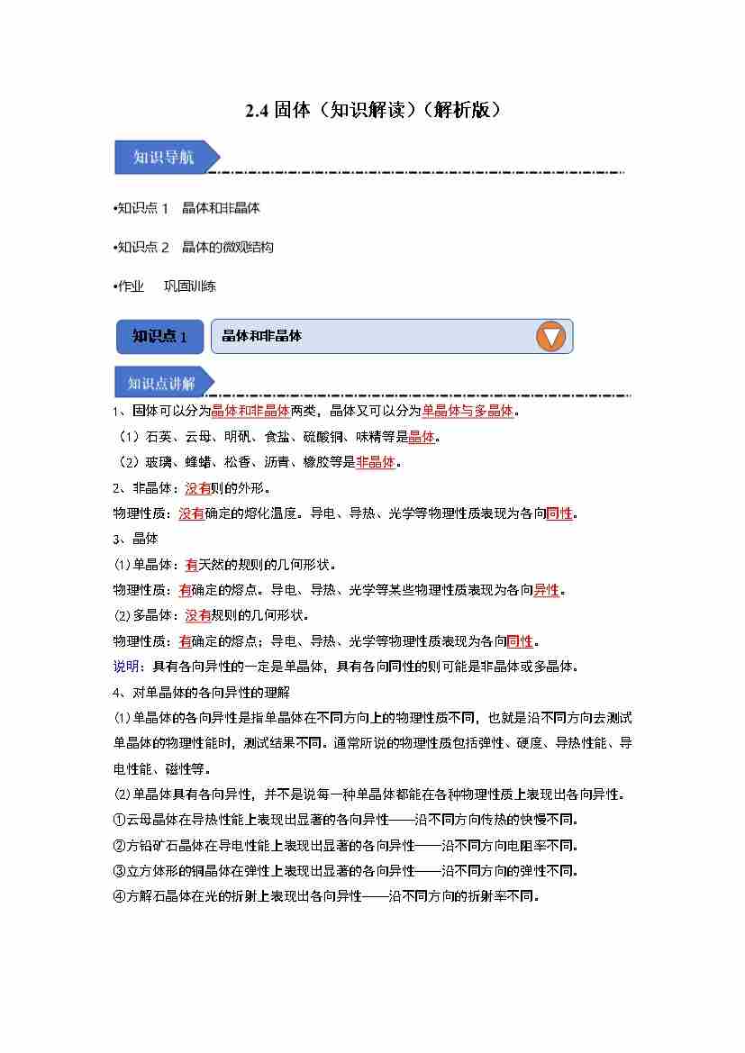 2.4固体(知识解读)(学生版)