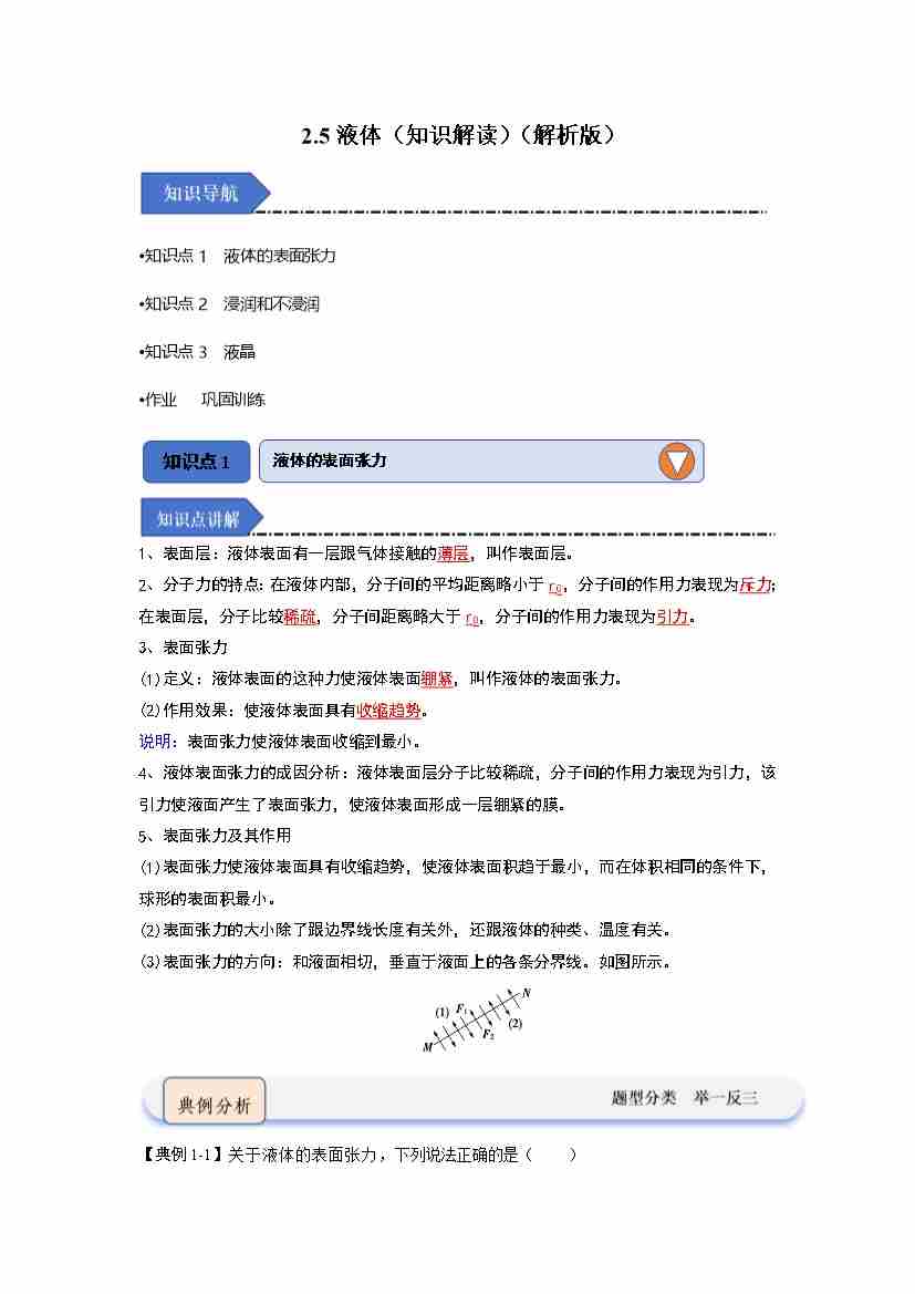 2.5液体(知识解读)(学生版)