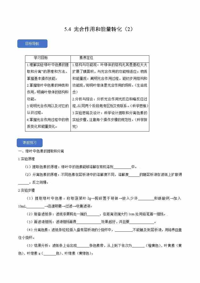 5.4 光合作用和能量转化(1)人教版必修1)学生版