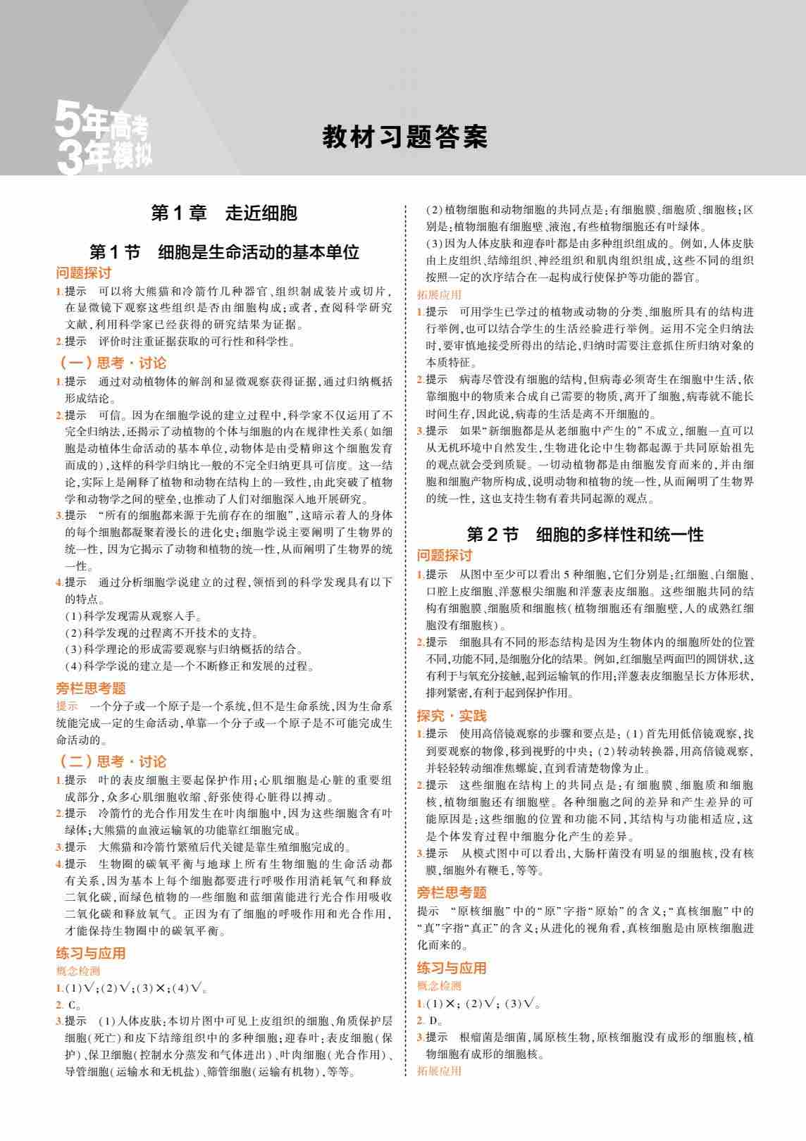 高中生物必修第1册参考答案-11页