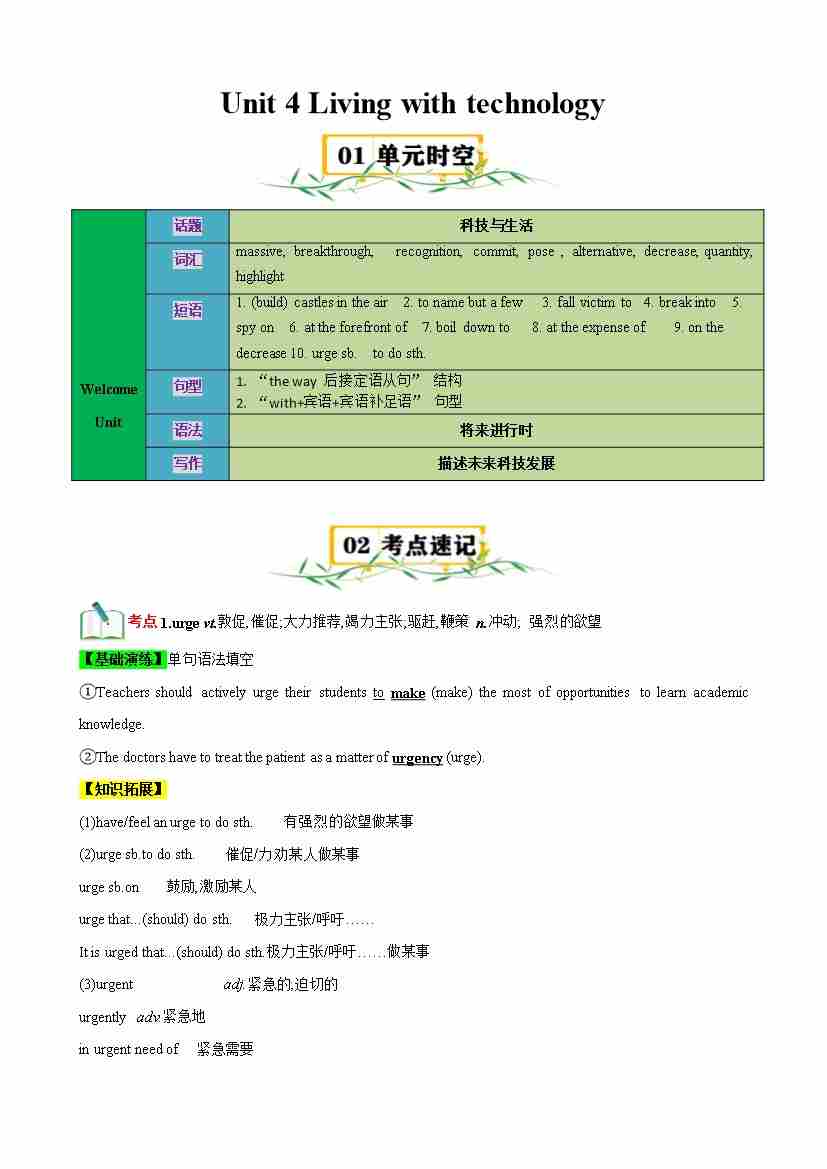 Unit 4 Living with technology(知识清单)(教师版)(译林版2020选择性必修第二册)