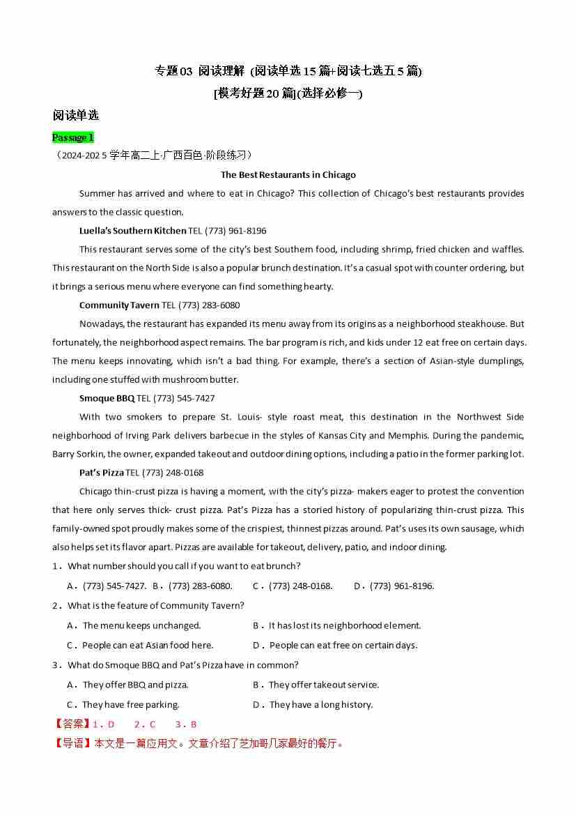 专题03 阅读理解(阅读单选15篇、阅读七选五5篇)(模考好题20篇)-译林版2020)(教师版)