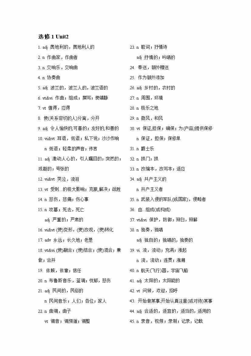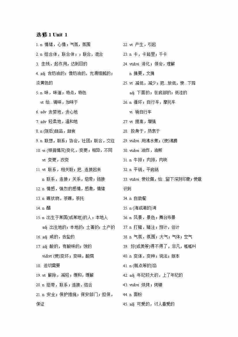 新译林版高一英语选择性必修一Unit2单词表默写表(英译汉、汉译英)