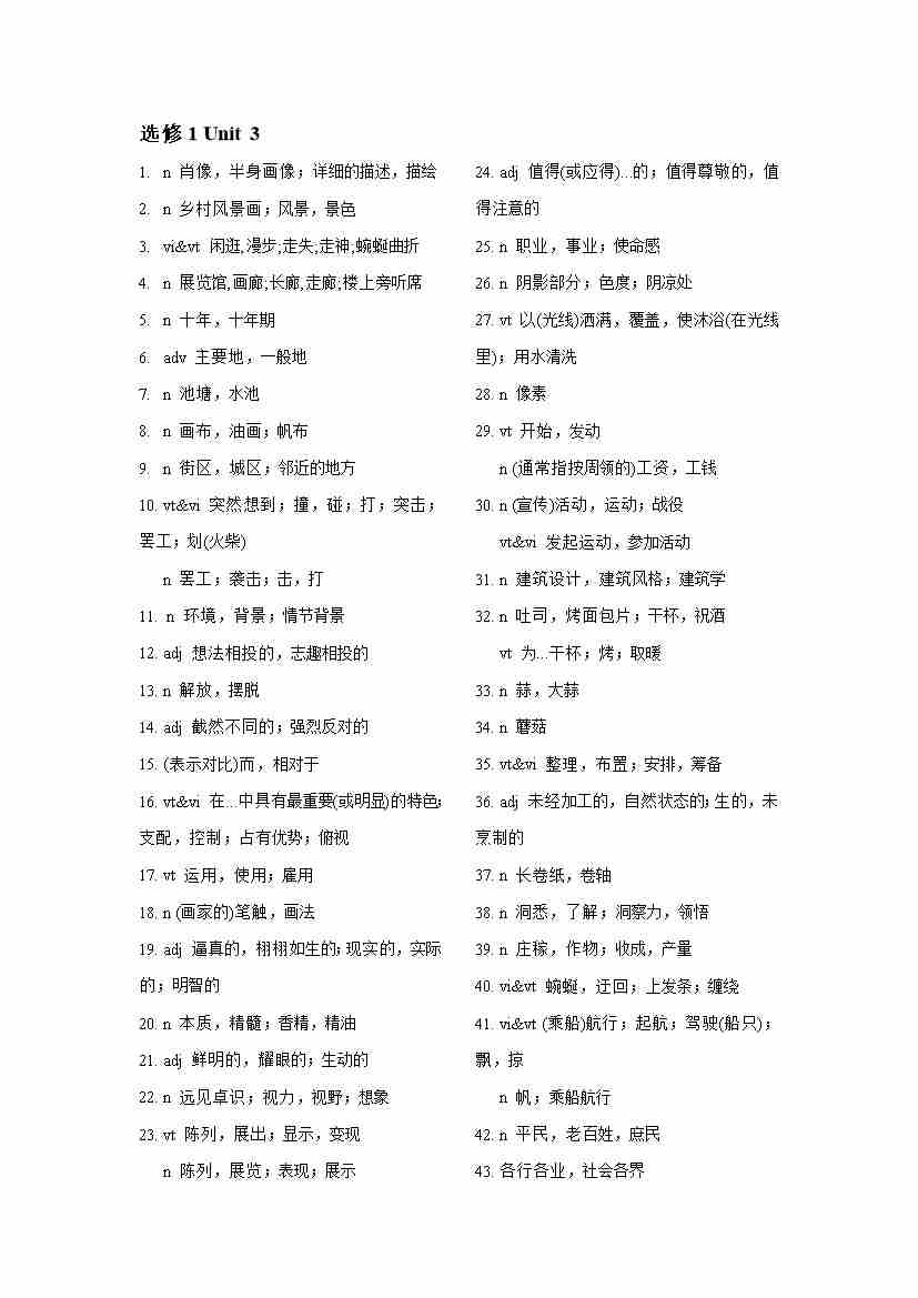 选择性必修第一册Unit3单词表(英译汉、汉译英)