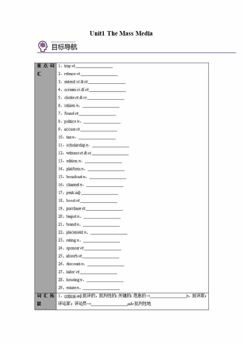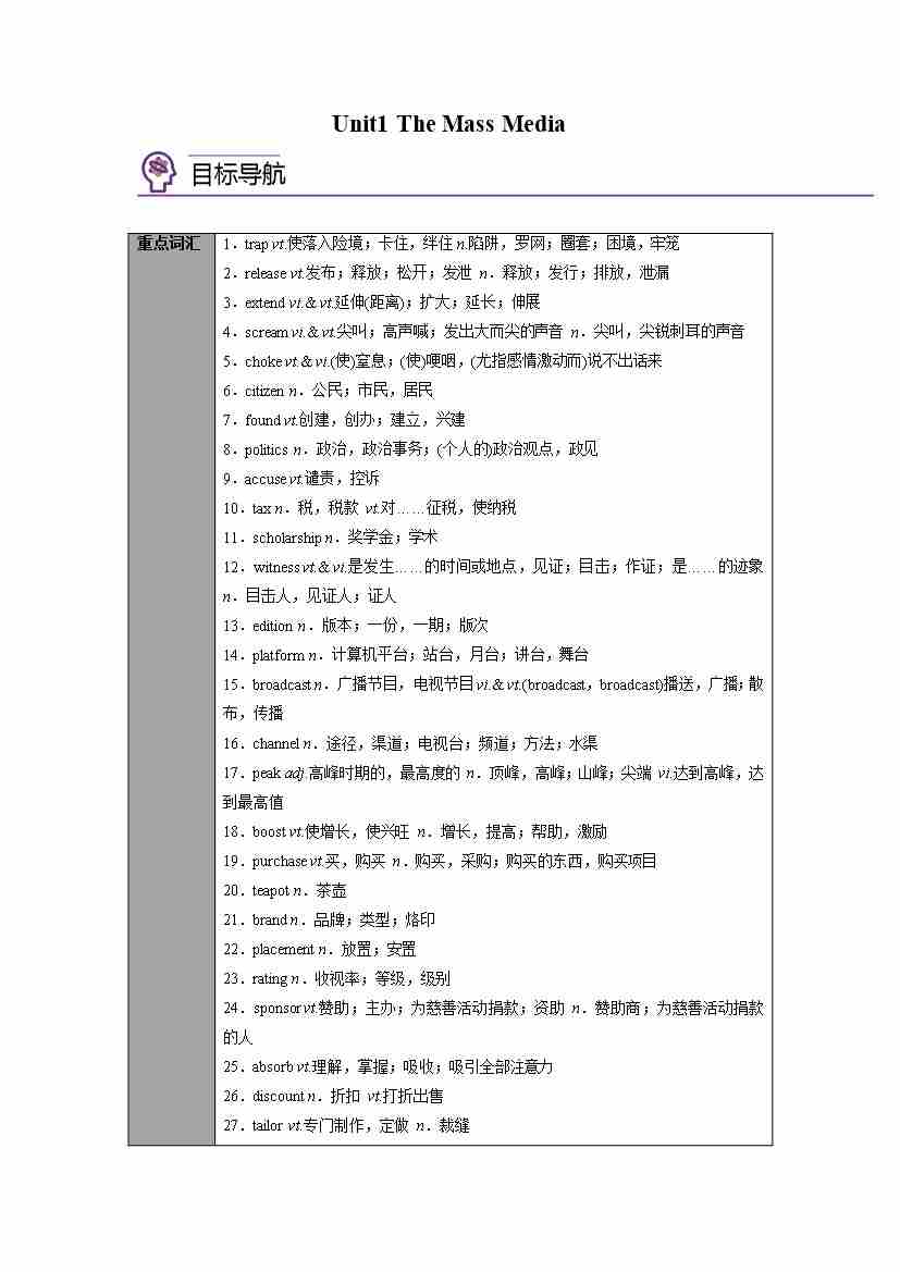 选择性必修第二册Unit1 The Mass Media(学生版)