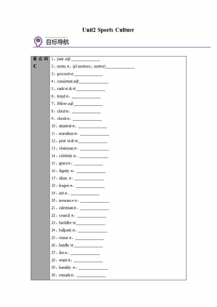 选择性必修第二册Unit2 Sports Culture(学生版)