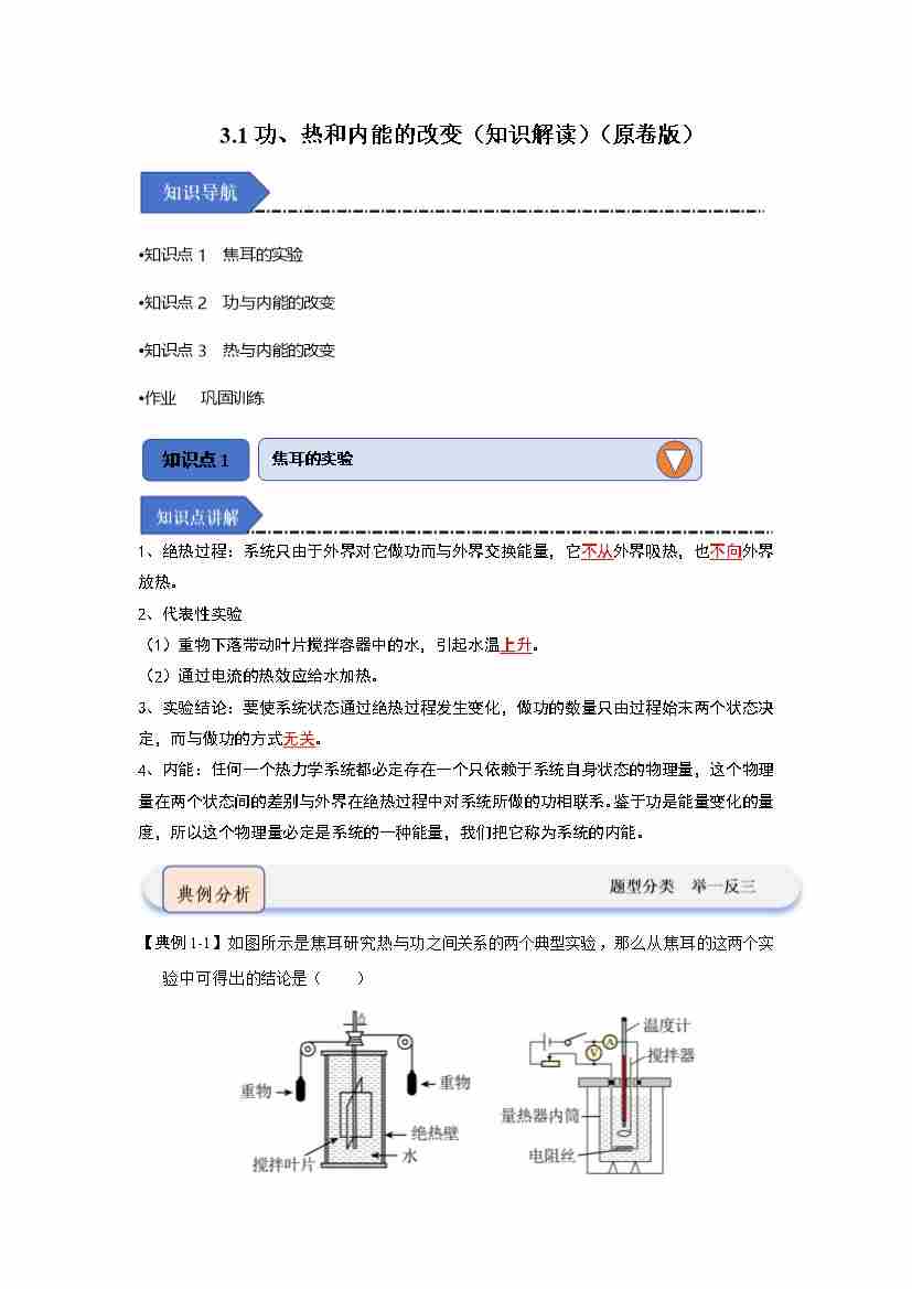 3.1功、热和内能的改变(知识解读)(学生版)