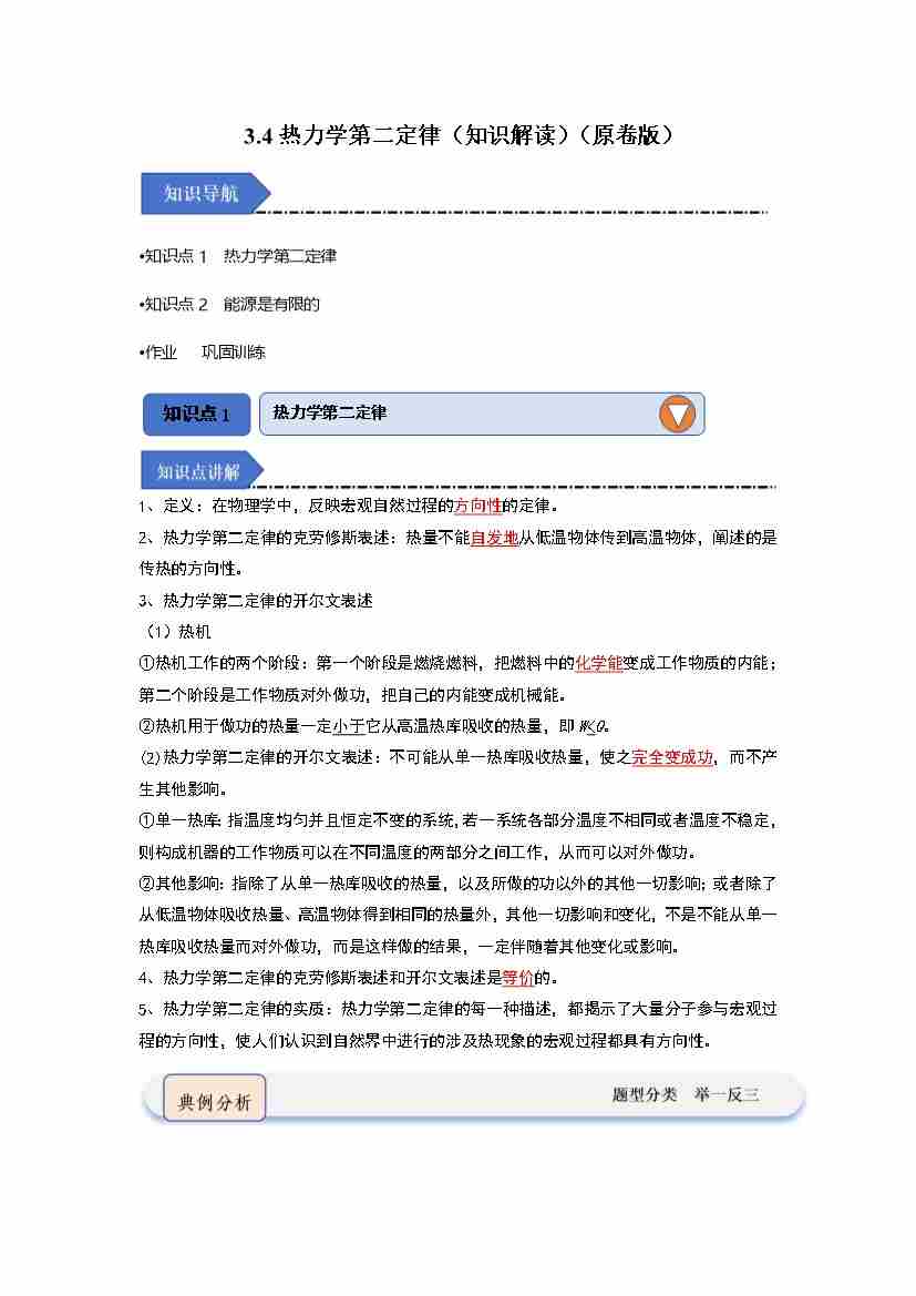 3.4热力学第二定律(知识解读)(学生版)