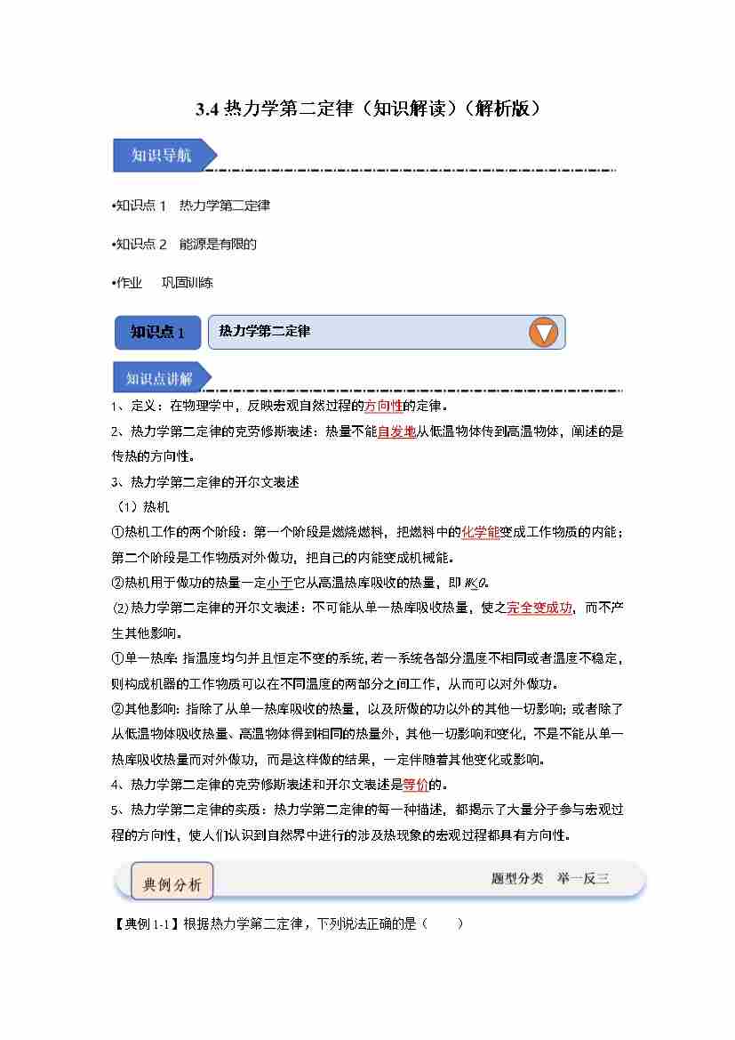 3.4热力学第二定律(知识解读)(教师版)