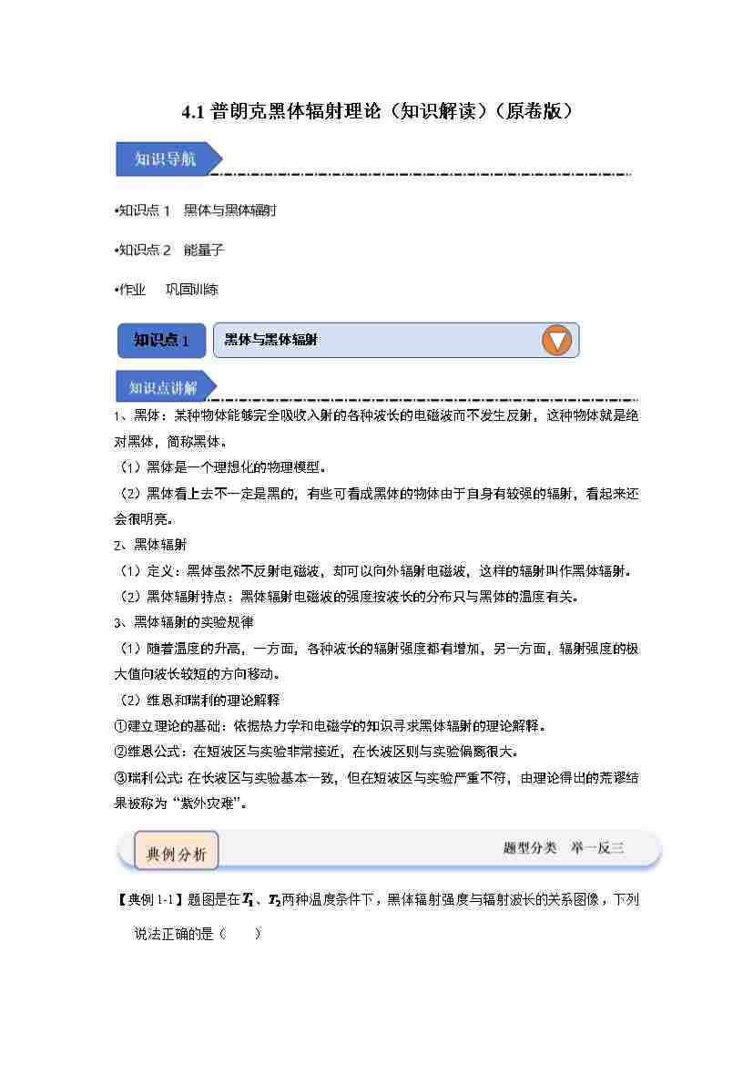 4.1普朗克黑体辐射理论(知识解读)(教师版)