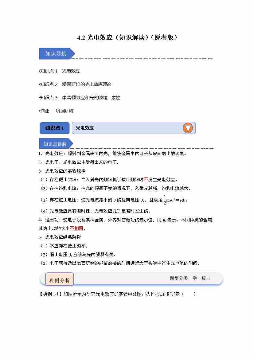 4.2光电效应(知识解读)(学生版)