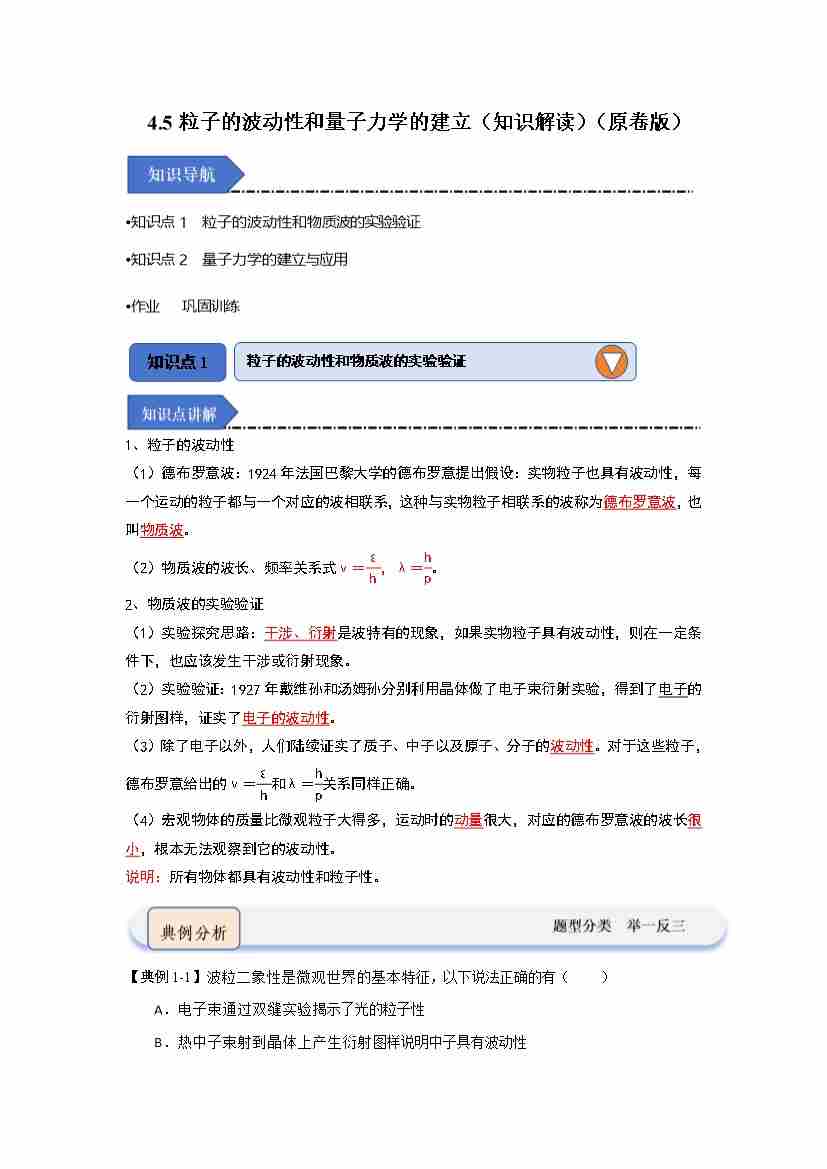 4.5粒子的波动性和量子力学的建立(知识解读)(教师版)