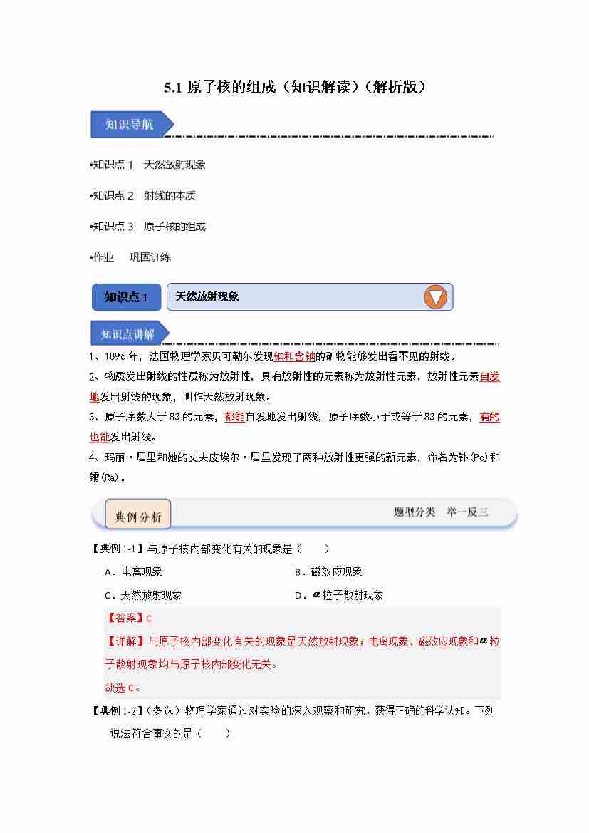 5.1原子核的组成(知识解读)(学生版)