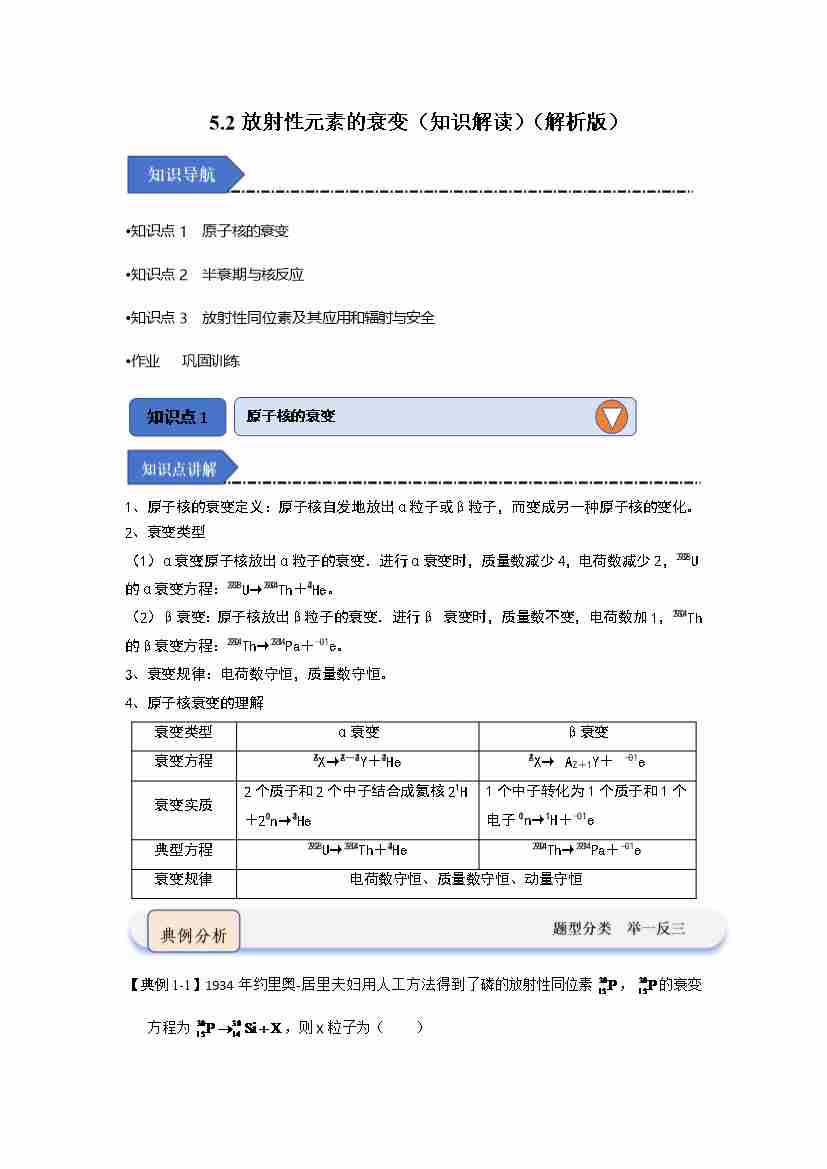 5.2放射性元素的衰变(知识解读)(教师版)