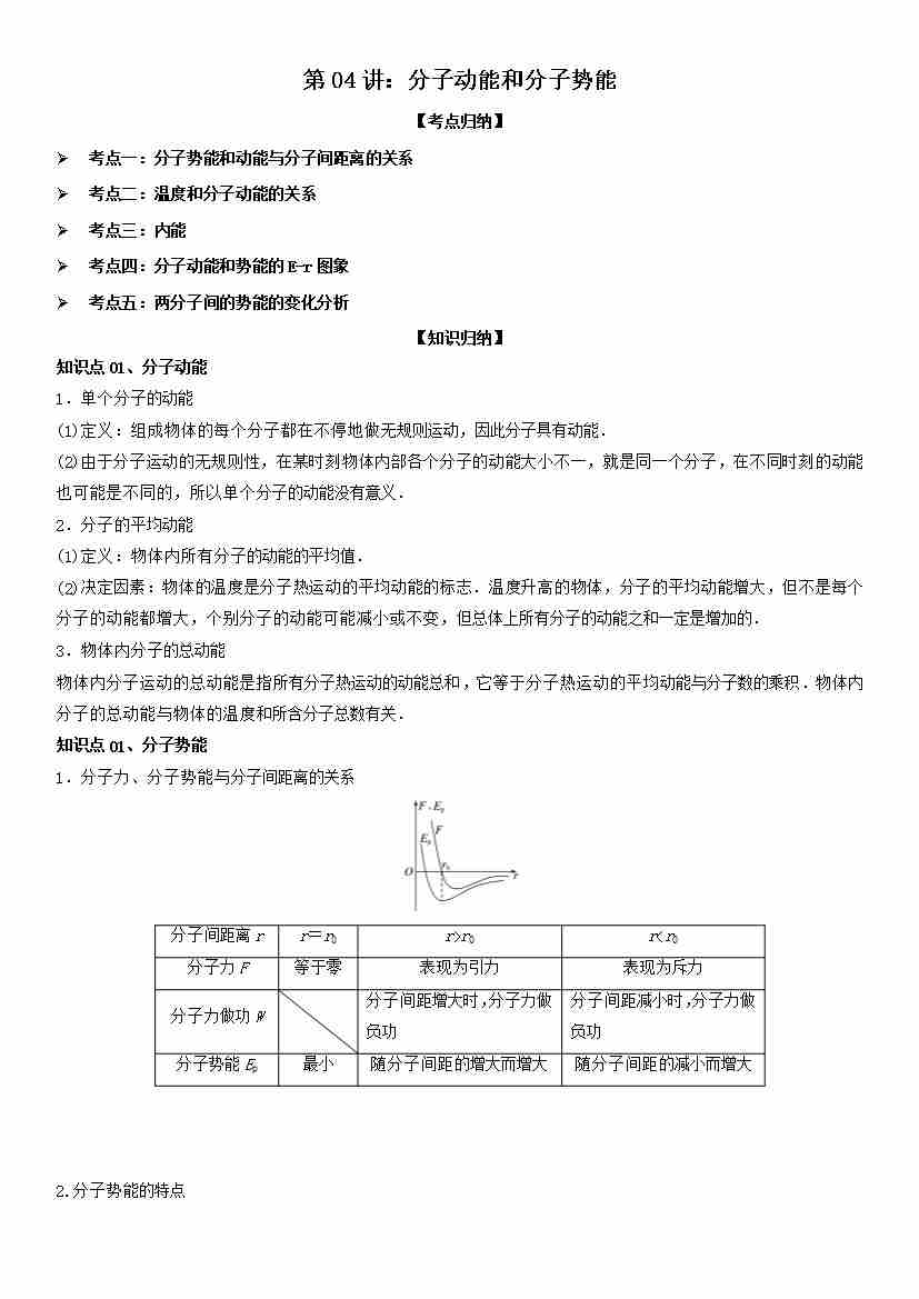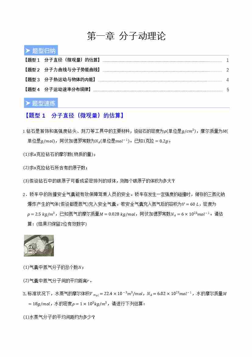 第一章 分子动理论(举一反三重难点训练)(原卷版)