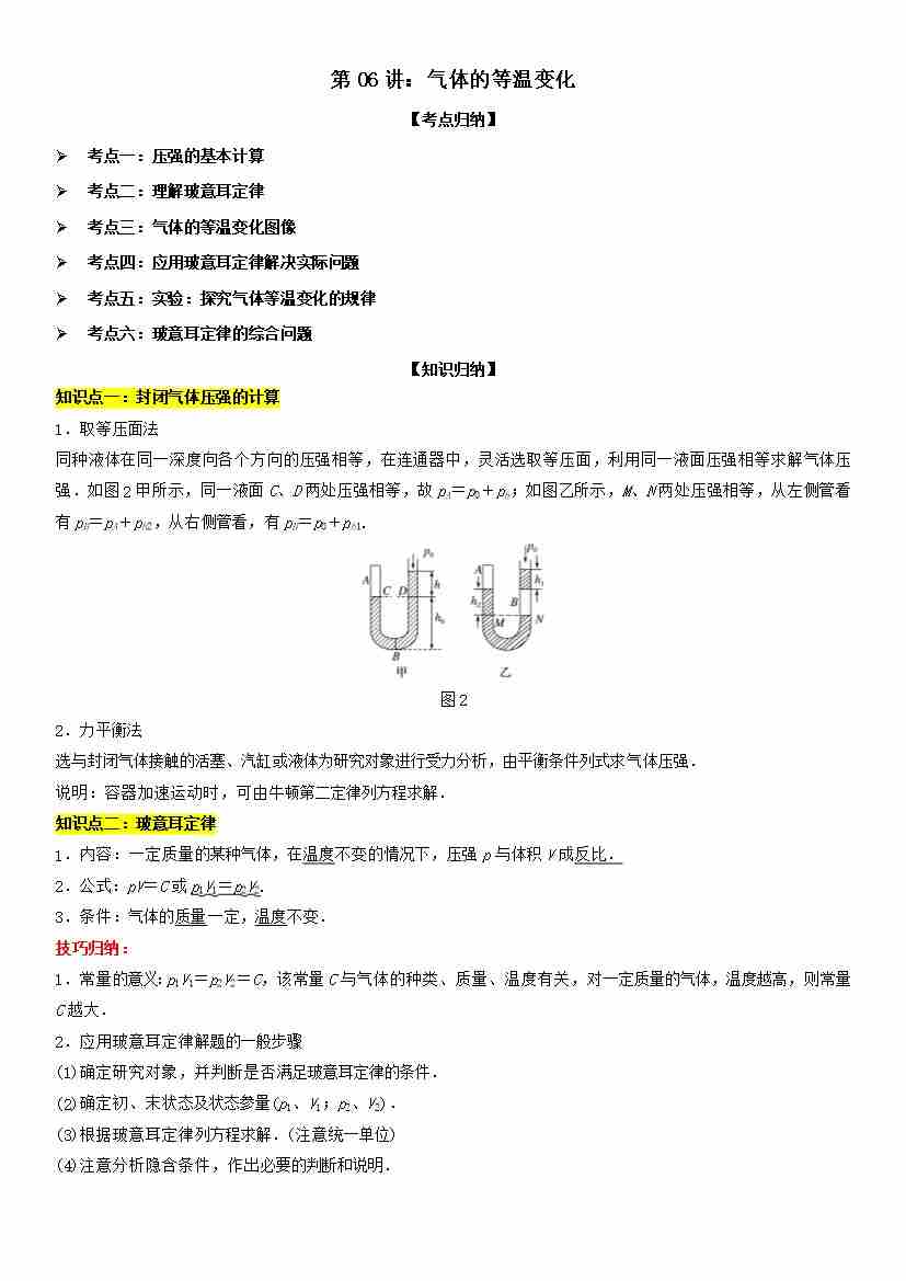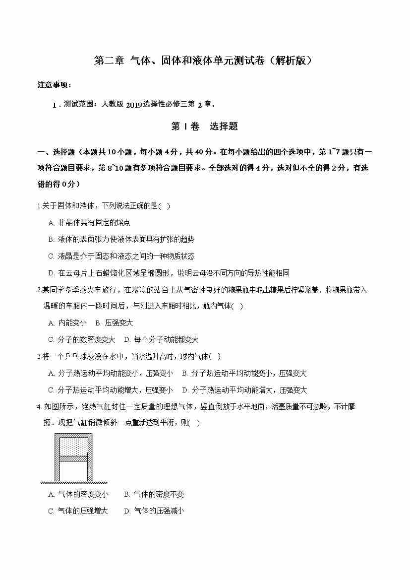 第二章 气体、固体和液体(举一反三单元测试)(原卷版)