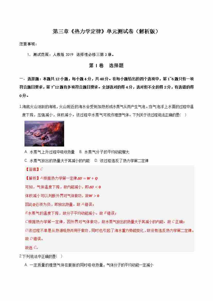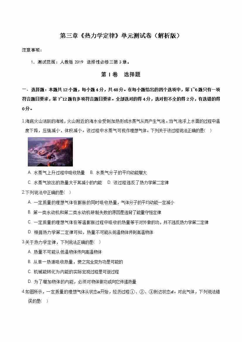 第三章 热力学定律(举一反三单元测试)(原卷版)