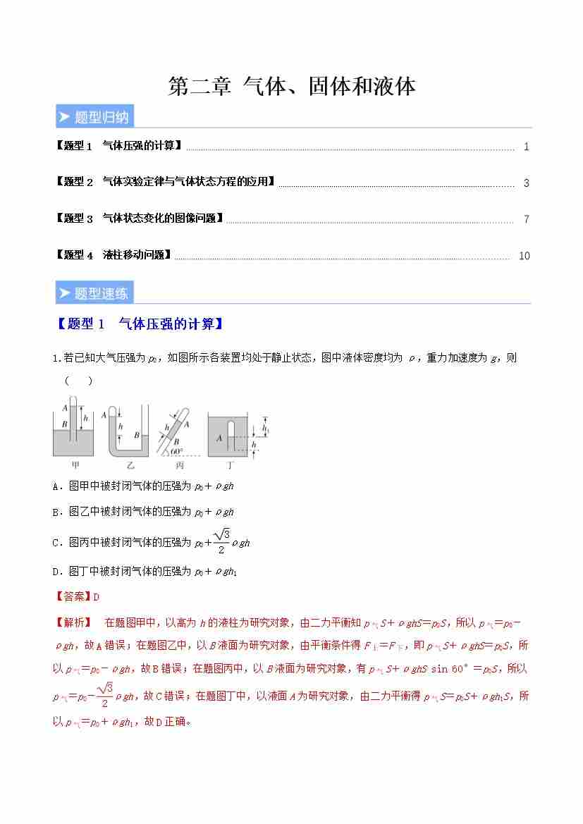 第二章 气体、固体和液体(举一反三重难点训练)(解析版)