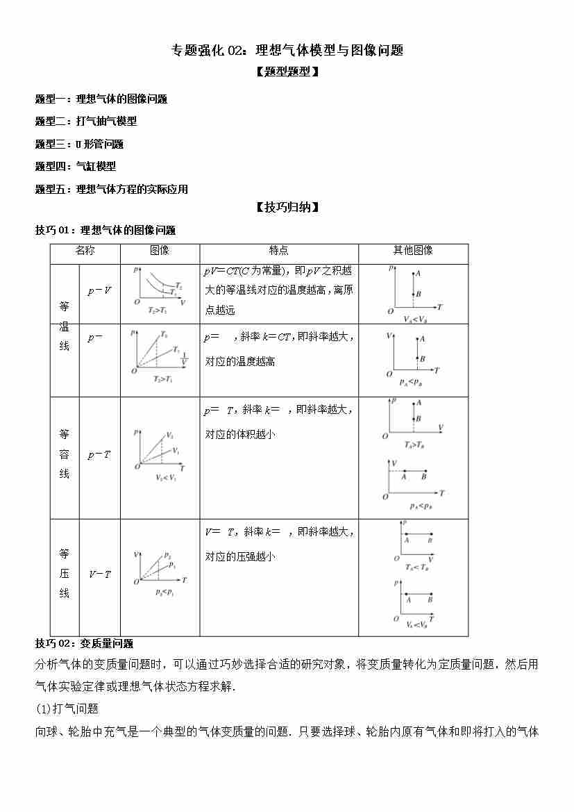 专题强化02:理想气体模型与图像问题 学生版