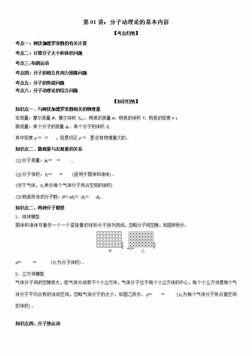 第01讲:分子动理论的基本内容 教师版