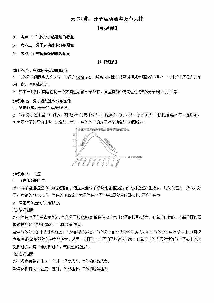 第03讲:分子运动速率分布规律 学生版