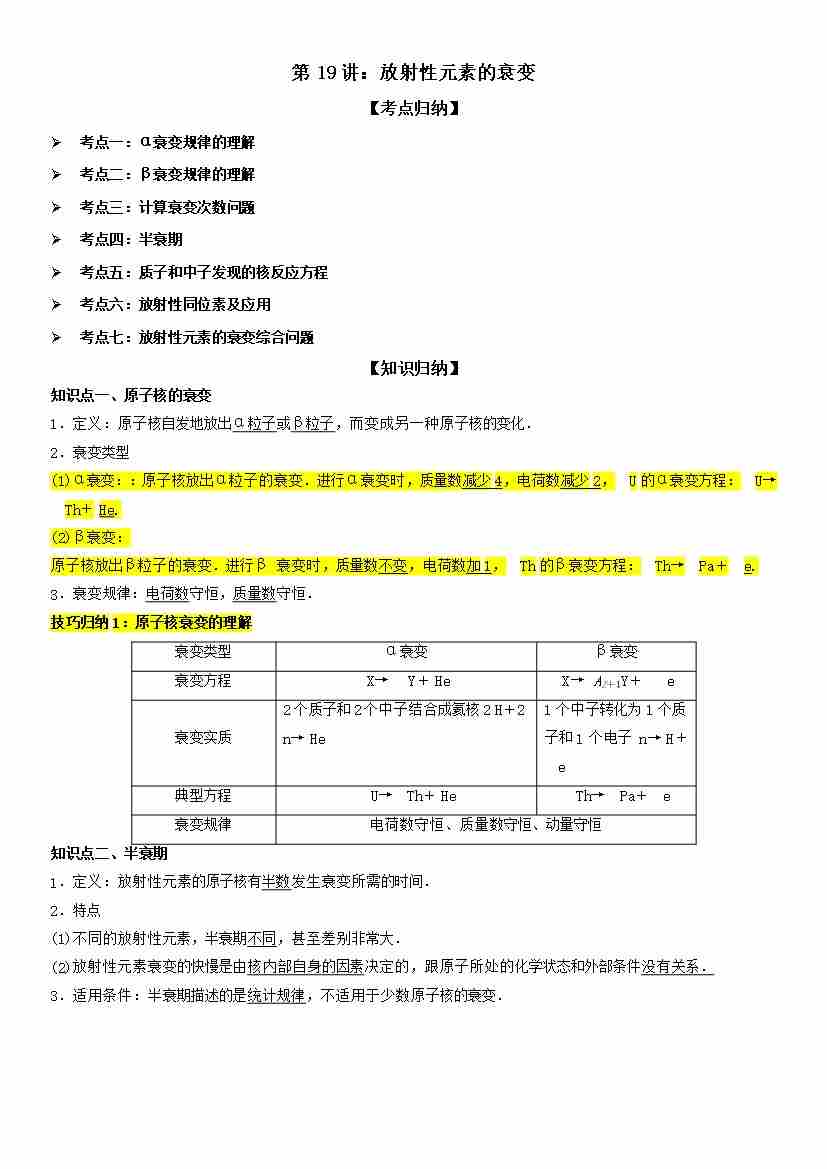 第19讲:放射性元素的衰变 学生版