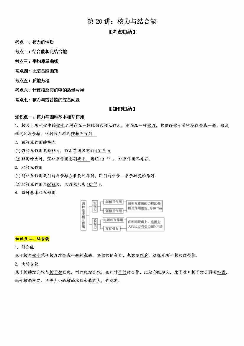 第20讲:核力与结合能 学生版
