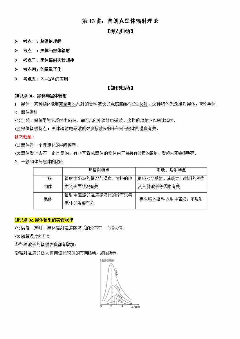第13讲:普朗克黑体辐射理论 学生版