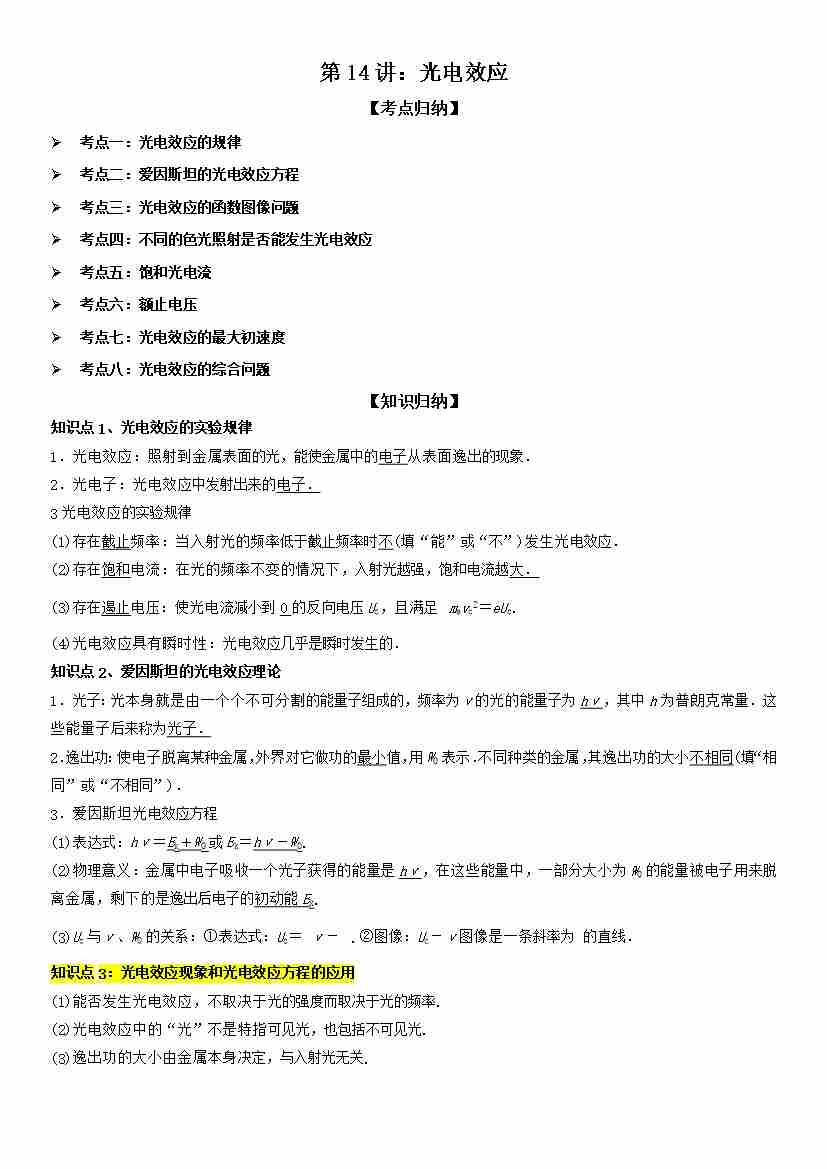 第14讲:光电效应 学生版